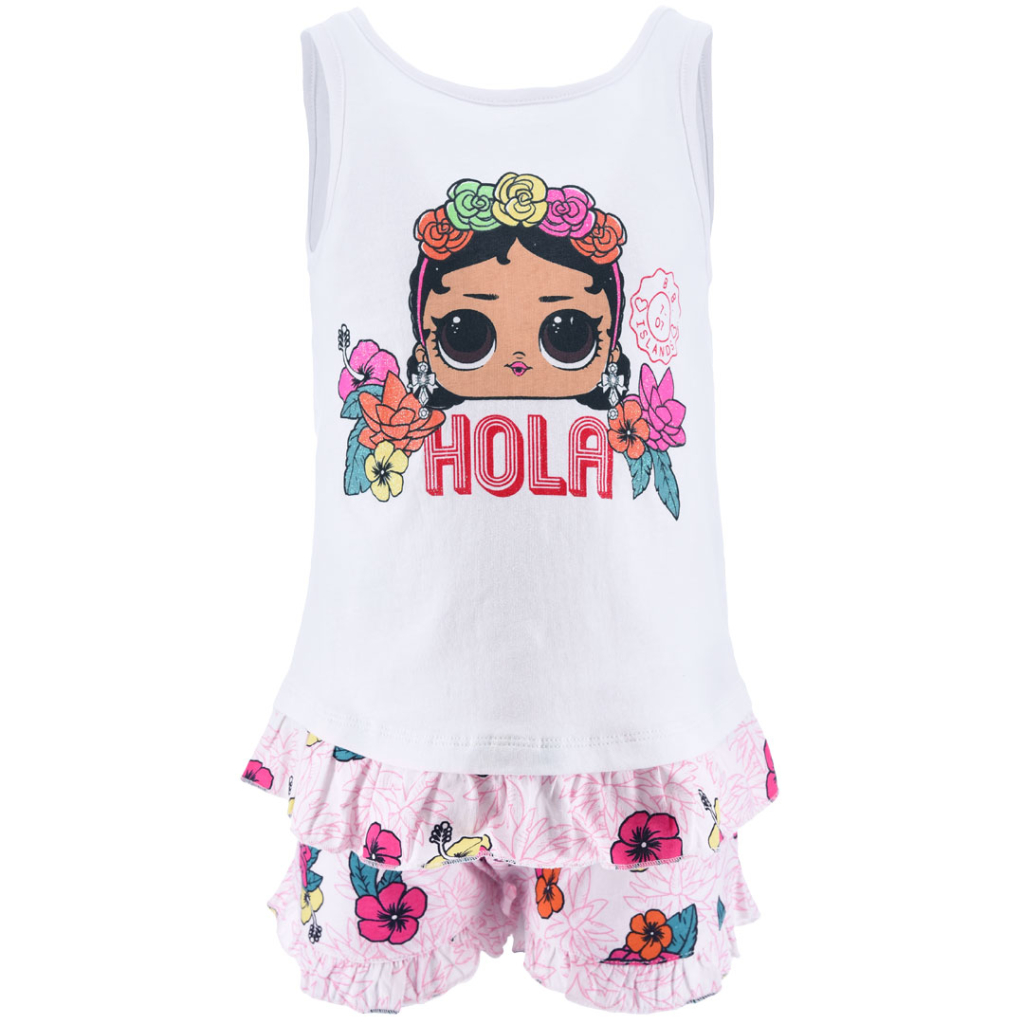 Dievčenský letný komplet - tielko s farebnou potlačou L.O.L.SURPRISE, s trblietavými detailmi, na spodnom okraji volánik. Pohodlné šortky v páse na gumu. Príjemný, pružný, bavlnený úplet.Dodatočné parametre