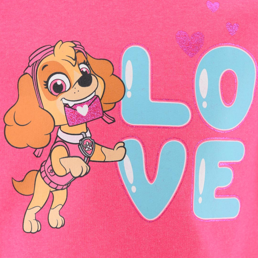 Krásna tepláková súprava pre dievčatá. Na mikine i teplákoch je farebný obrázok SKYE z Labkovej patroly. Príjemná, hrejivá teplákovina s chĺpkom na rubovej strane. Vyrobené z recyklovaných materiálov.Dodatočné parametre