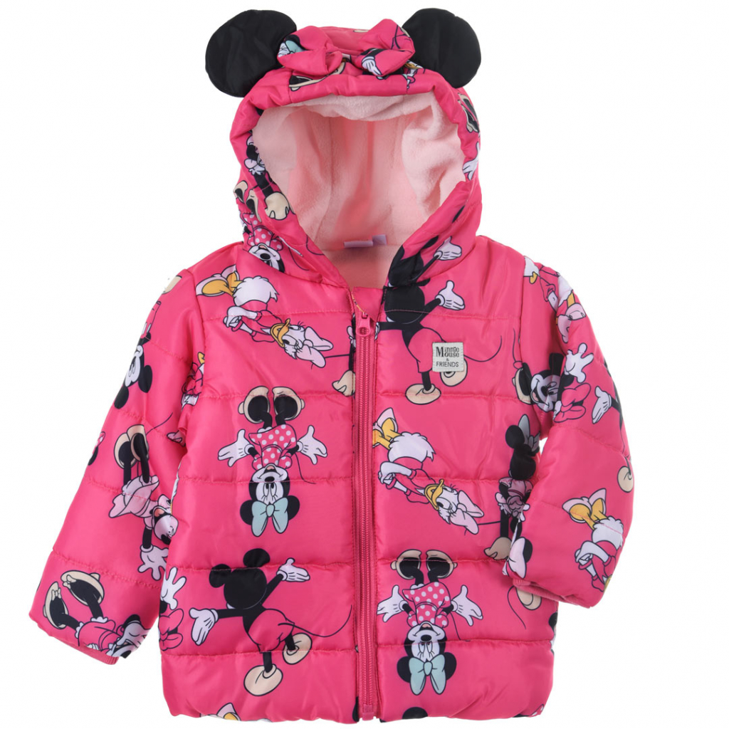 Krásna bundička pre dievčatá. Utešená potlač Minnie, myšiaka Mickeyho a Daisy. Kapucňa s našitou mašľou a ozdobnými uškami. Rukávy majú vnútorný pružný lem. Po tele i v kapucni fleecová podšívka, v rukávoch šuštiak pre ľahšie obliekanie.Dodatočné parametre