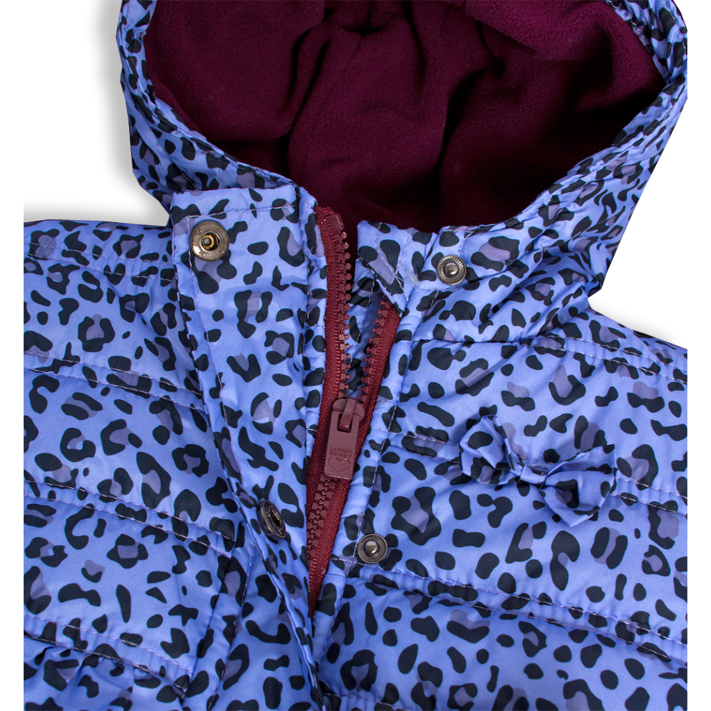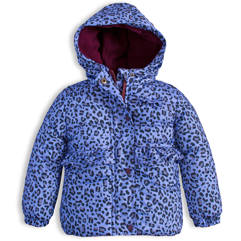 Dievčenská zimná bunda s kapucňou. Zapínanie na zips krytý légou s patentkami. Vpredu našitý volánik. Rukávy do gumy. Vnútri flísová podšívka, v rukávoch šuštiak.Dodatočné parametre
