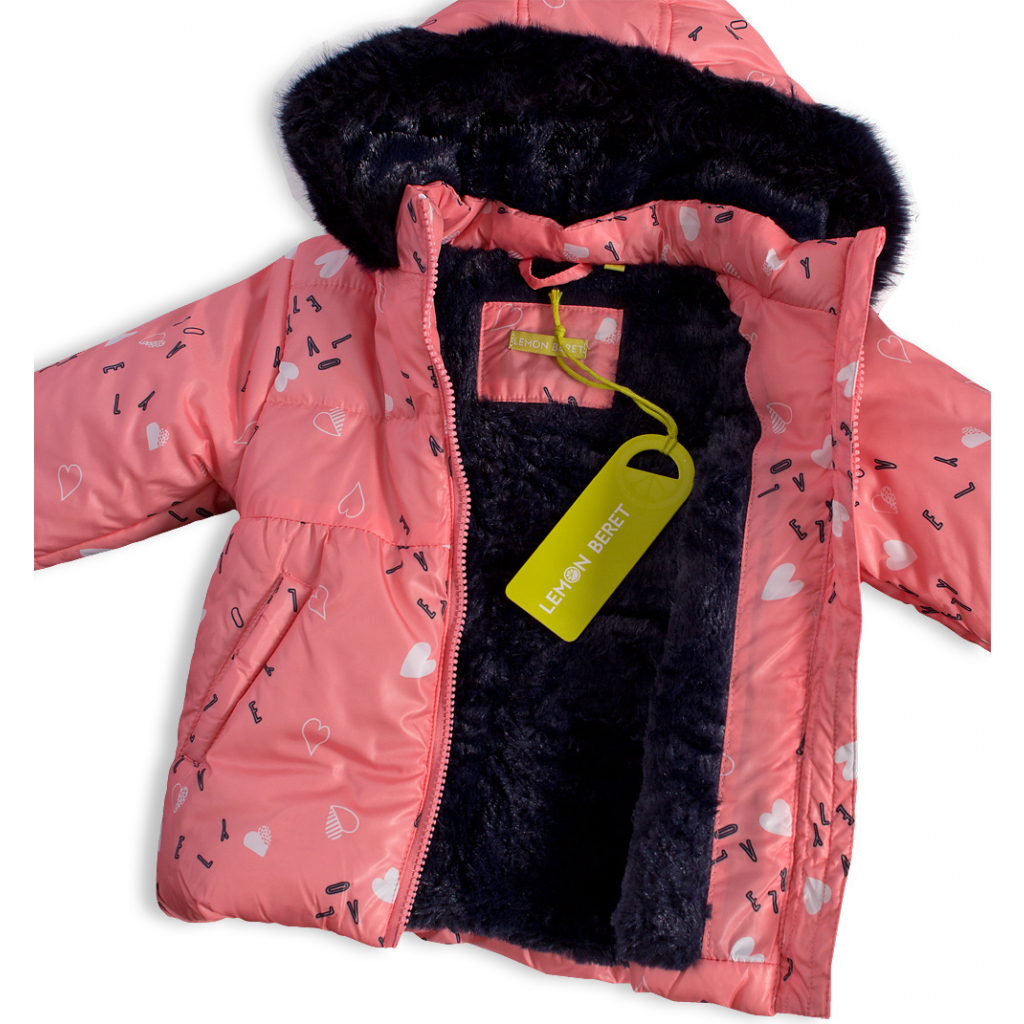 Dievčenská zimná bunda LEMON BERET SRDIEČKA ružová