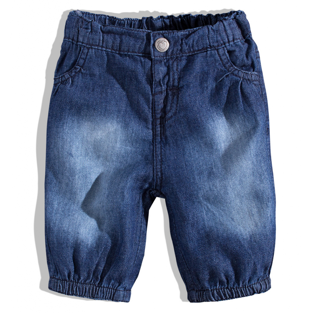 Dojčenské dievčenské capri nohavice z ľahkej džínsoviny. V páse patent a sťahovacia guma. Funkčné vrecká. Nohavice do gumičky.Dodatočné parametre