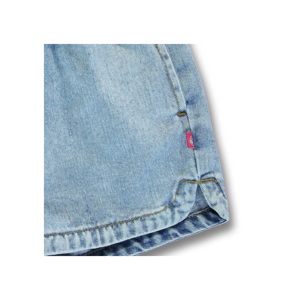 Dievčenské šortky zo svetlej džínsoviny. Bez zapínania, v páse na gumu. Na bokoch všité vrecká, jedno malé vrecko našité vzadu.Dodatočné parametre
