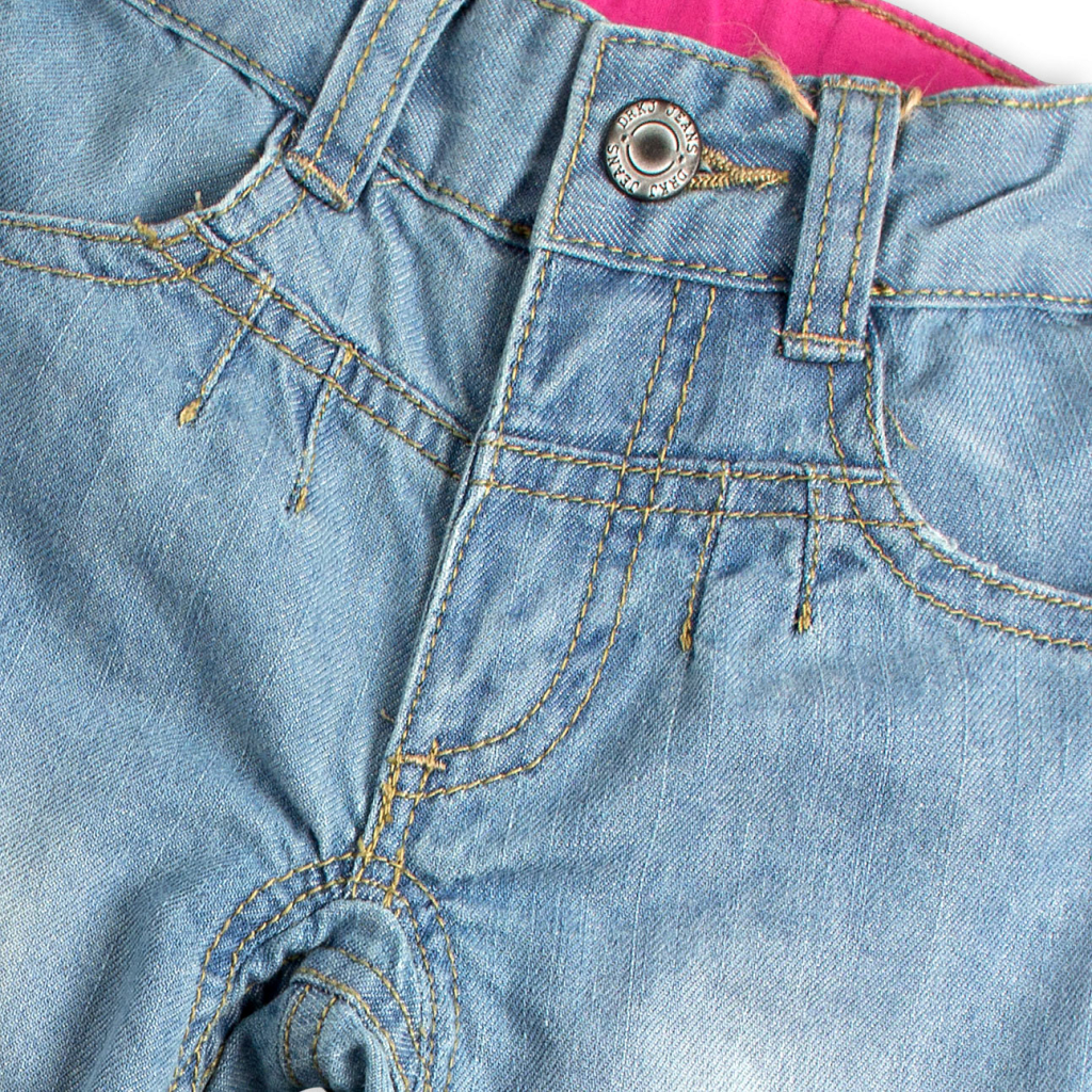 Dievčenské džínsy so zaujímavým prešitím. V páse zips a gombík, sťahovacia guma. Funkčné vrecká vpredu i vzadu.Dodatočné parametre