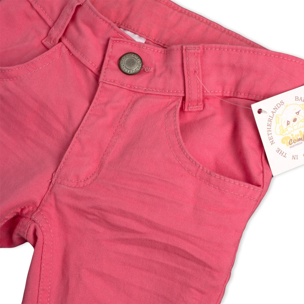 Dievčenské nohavice z farebnej džínsoviny. Klasický strih s vreckami vpredu i vzadu. Vzadu sedlo. Zapínanie na zips a gombík, v páse sťahovacia guma. Mäkká džínsovina s podielom elastanu.Dodatočné parametre