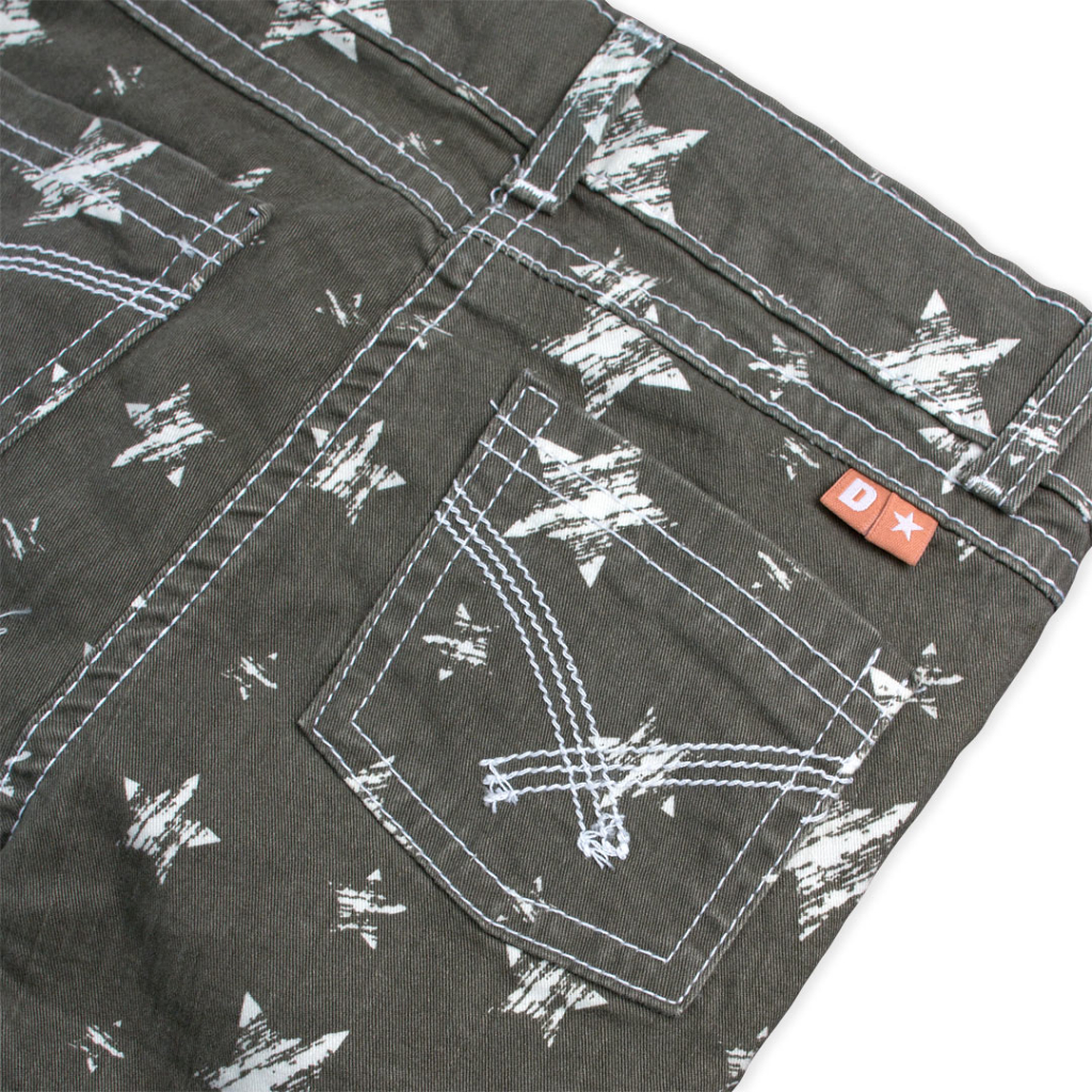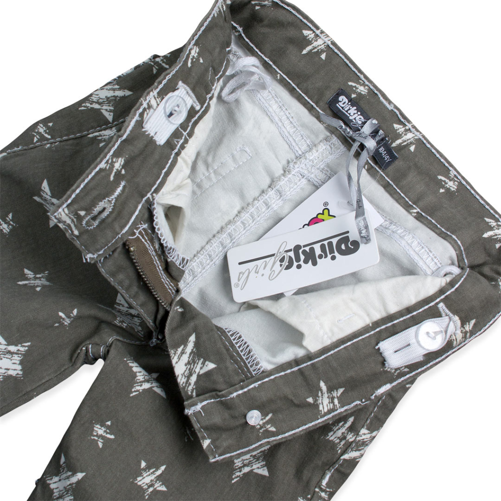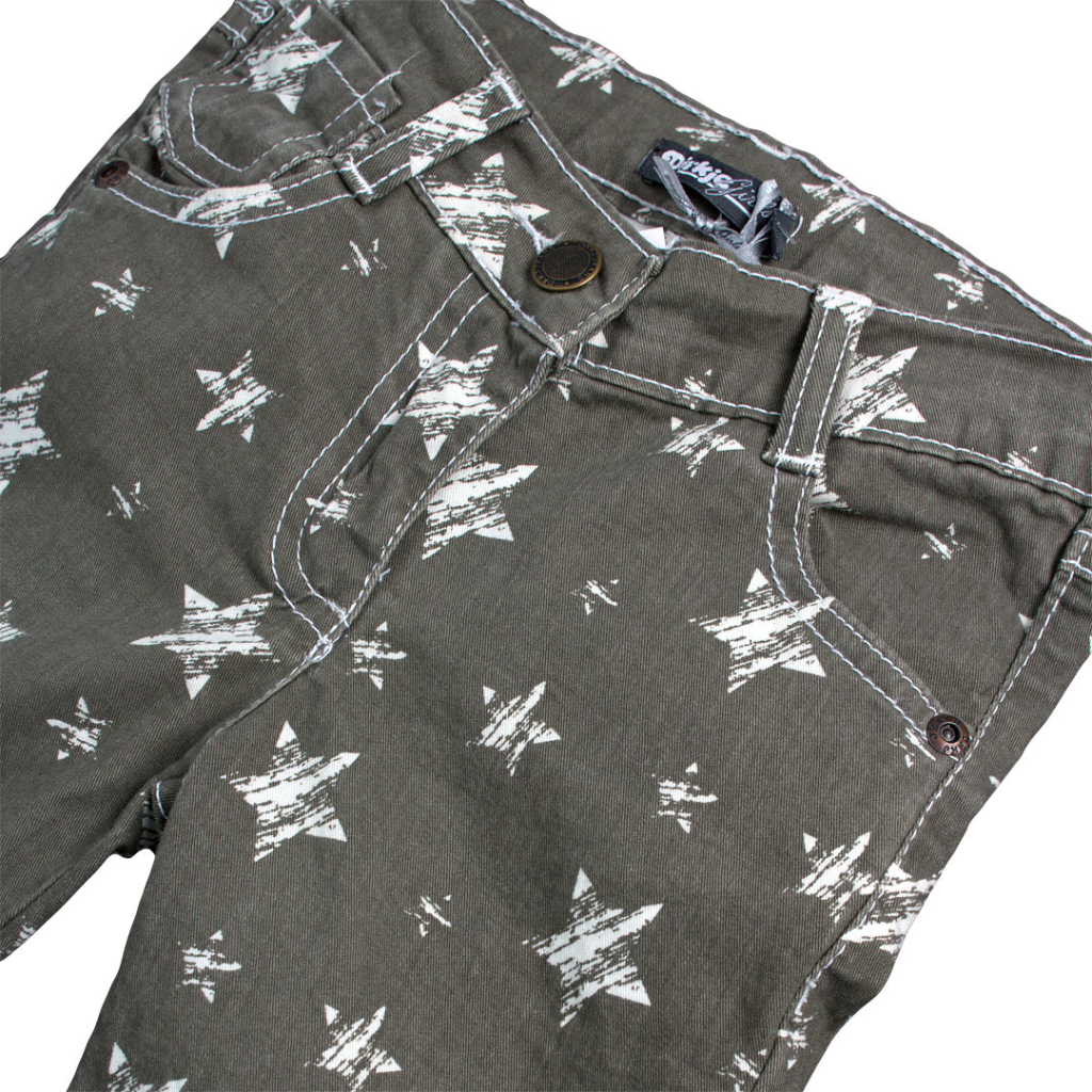 Dievčenské džínsy s potlačou hviezdičiek. Klasický strih, funkčné vrecká vpredu i vzadu. Zapínanie na zips a gombík, v páse sťahovacia guma.Dodatočné parametre