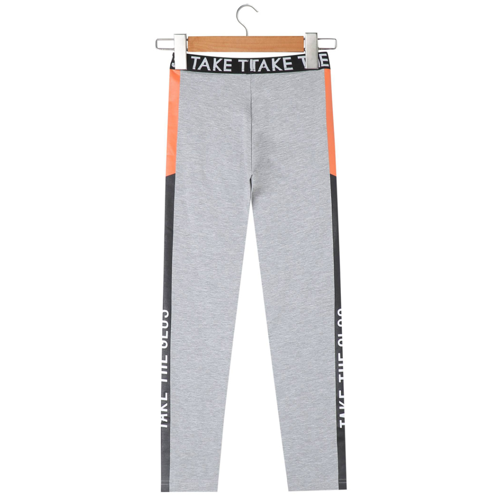 Dievčenské legíny so širšou gumou v páse, po stranách farebný pruh s nápisom. Príjemný bavlnený úplet s podielom elastanu.Dodatočné parametre