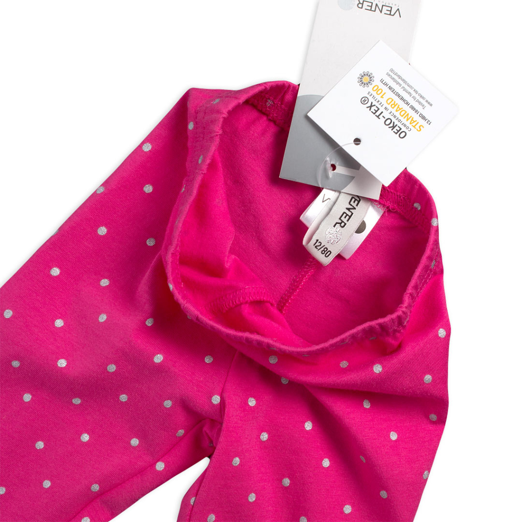 Krásne legíny pre dievčatá. Sýto ružová farba s potlačou strieborných bodiek.Dodatočné parametre