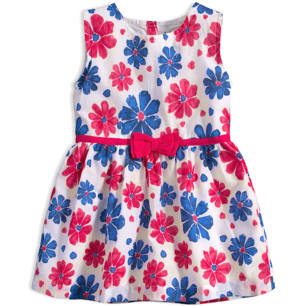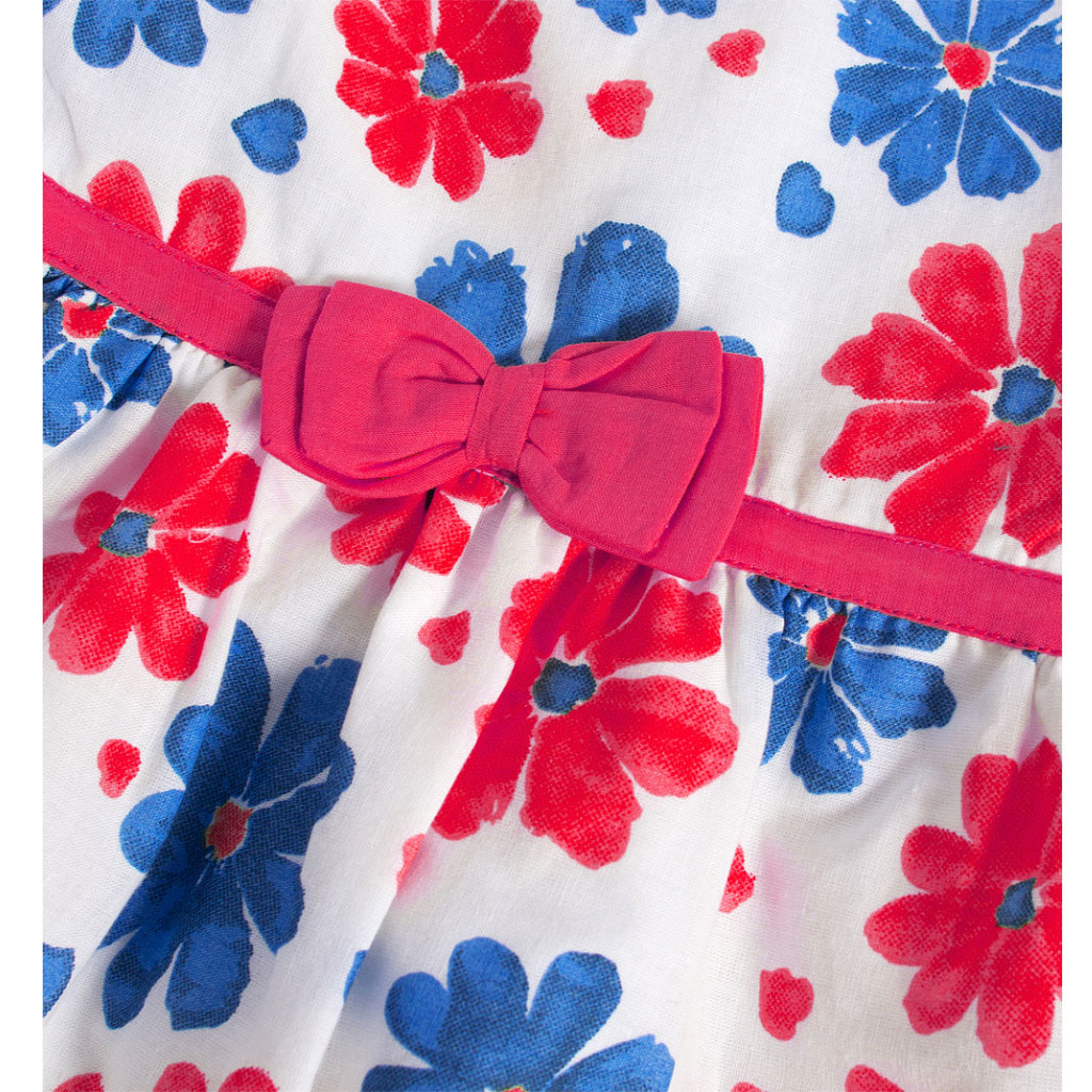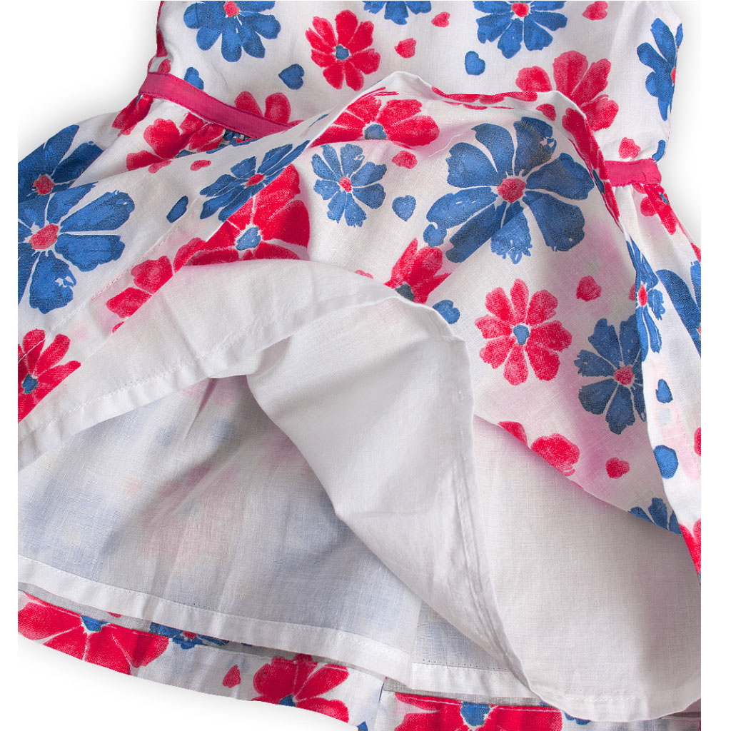 Letné šaty pre dievčatá. Bez rukávov. So spodničkou. Ľahké, príjemné bavlnené plátno. Vzadu zapínanie na gombíky. V páse našitá mašľa. Potlač kvetiniek.Dodatočné parametre