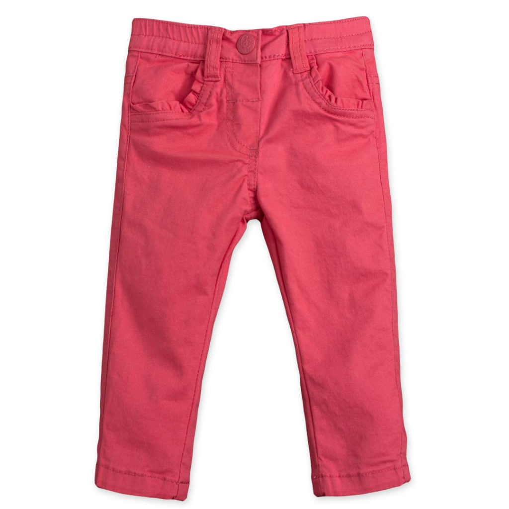 Dievčenské nohavice z farebnej džínsoviny. Mäkký, pružný materiál. V páse guma, zapínanie na patent.Dodatočné parametre