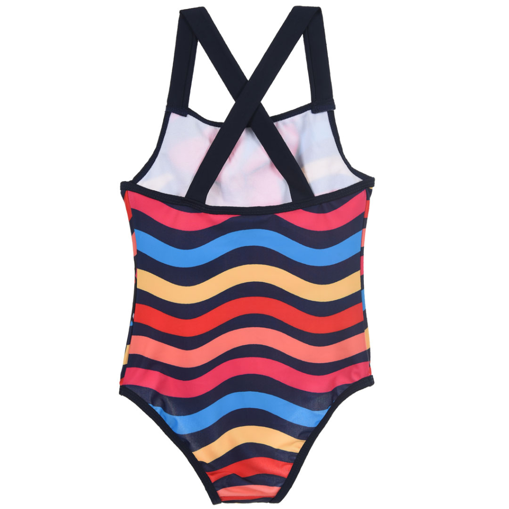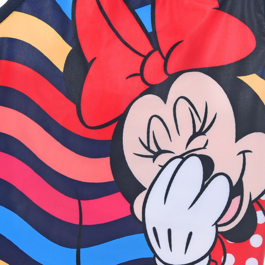 Jednodielne dievčenské plavky s myškou Minnie a farebnými prúžkami. Ramienka vzadu prekrížené.Dodatočné parametre