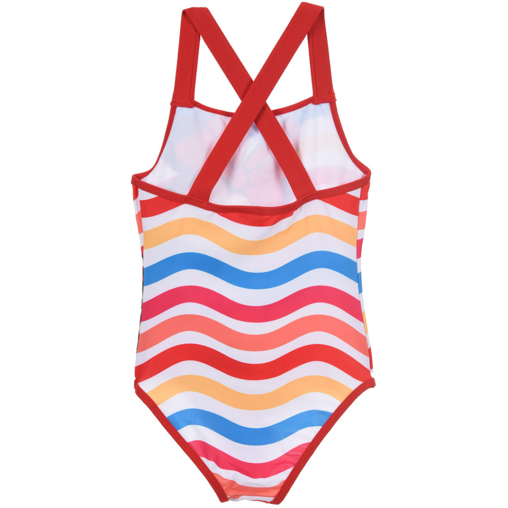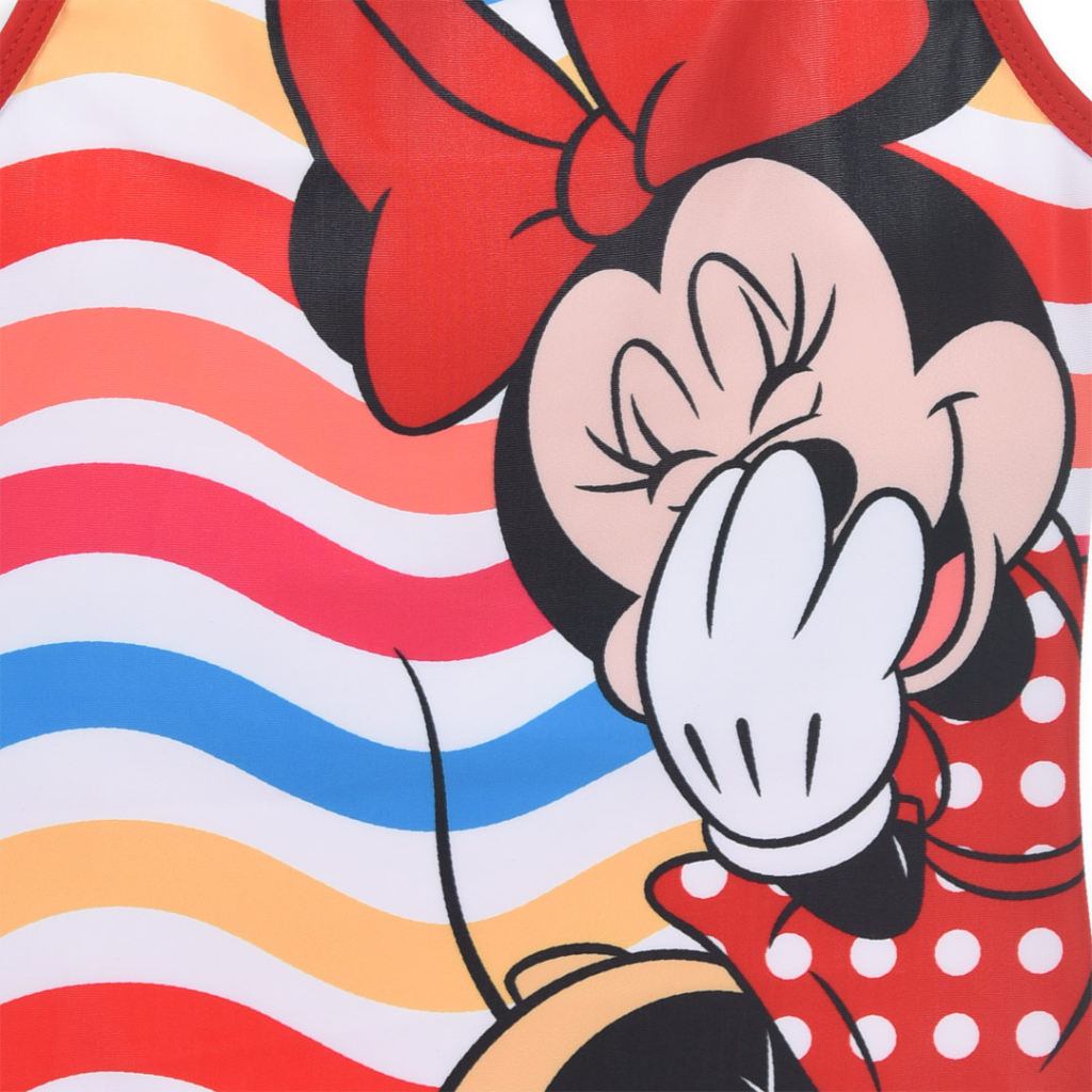 Jednodielne dievčenské plavky s myškou Minnie a farebnými prúžkami. Ramienka vzadu prekrížené.Dodatočné parametre