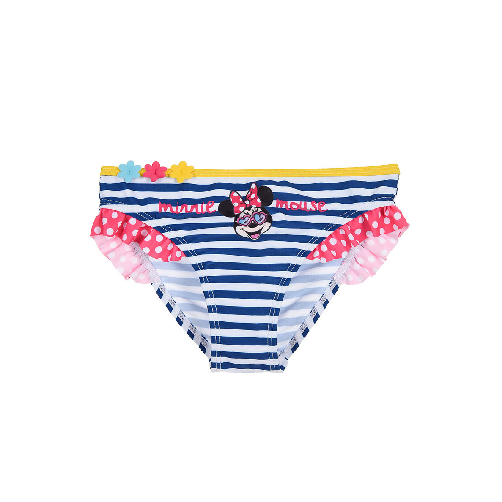 Spodný diel plaviek pre dievčatá. S obrázkom myšky Minnie a hravou kombináciou prúžkov a bodiek.Dodatočné parametre
