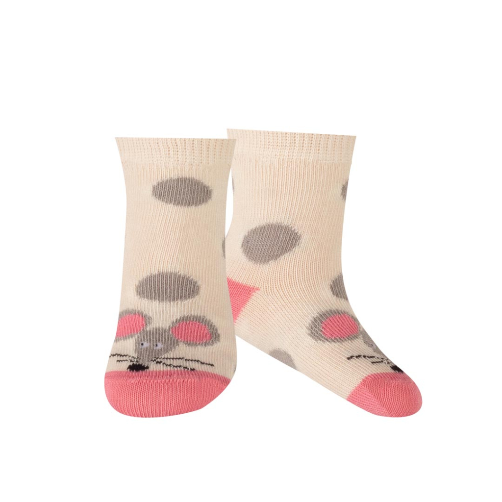Dojčenské ponožky so vzorom WOLA MYŠKA,BODKY krémové