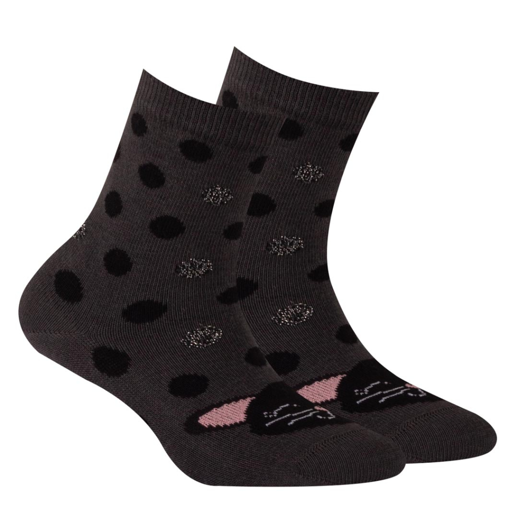 Dievčenské ponožky so vzorom WOLA MAČIČKA, BODKY šedé