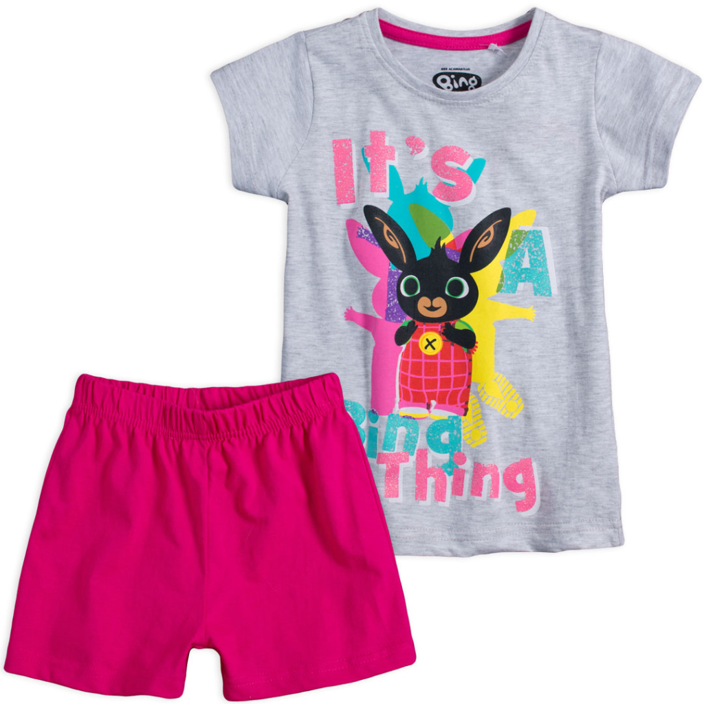 Dievčenské pyžamo so zajačikom Bingom. Tričko s krátkym rukávom, s farebným obrázkom. Pohodlné, jednofarebné šortky.