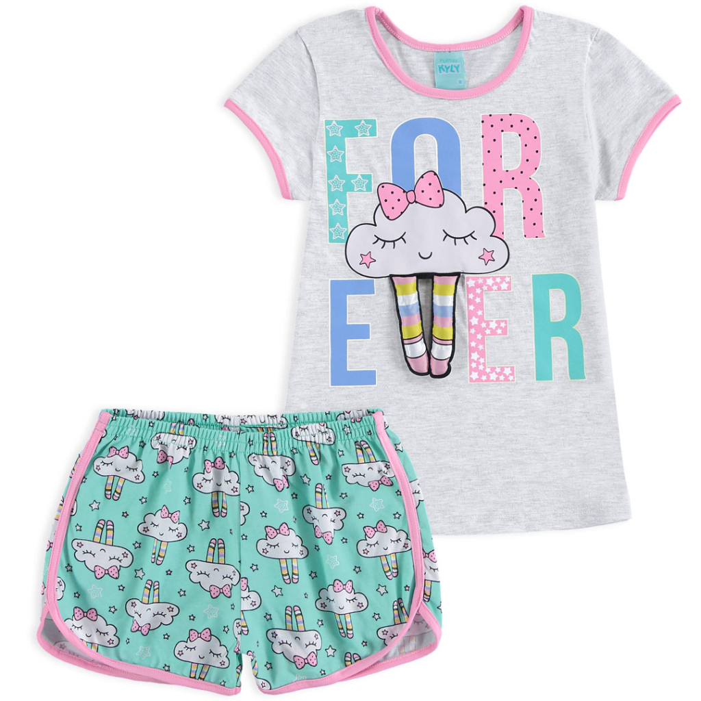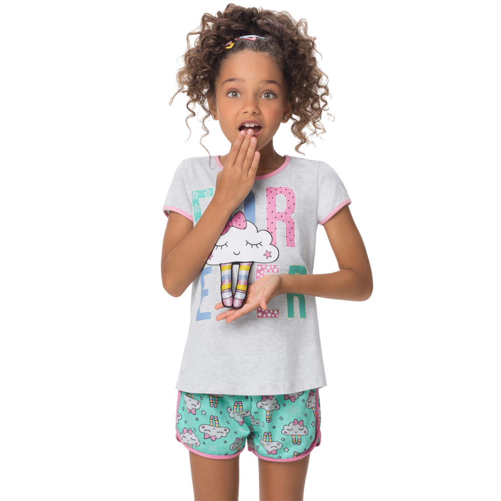 Dievčenské letné pyžamo. Tričko s krátkym rukávom, s potlačou a aplikáciou. Pohodlné šortky. Pružný bavlnený úplet. Vyrobené v Brazílii.Dodatočné parametre