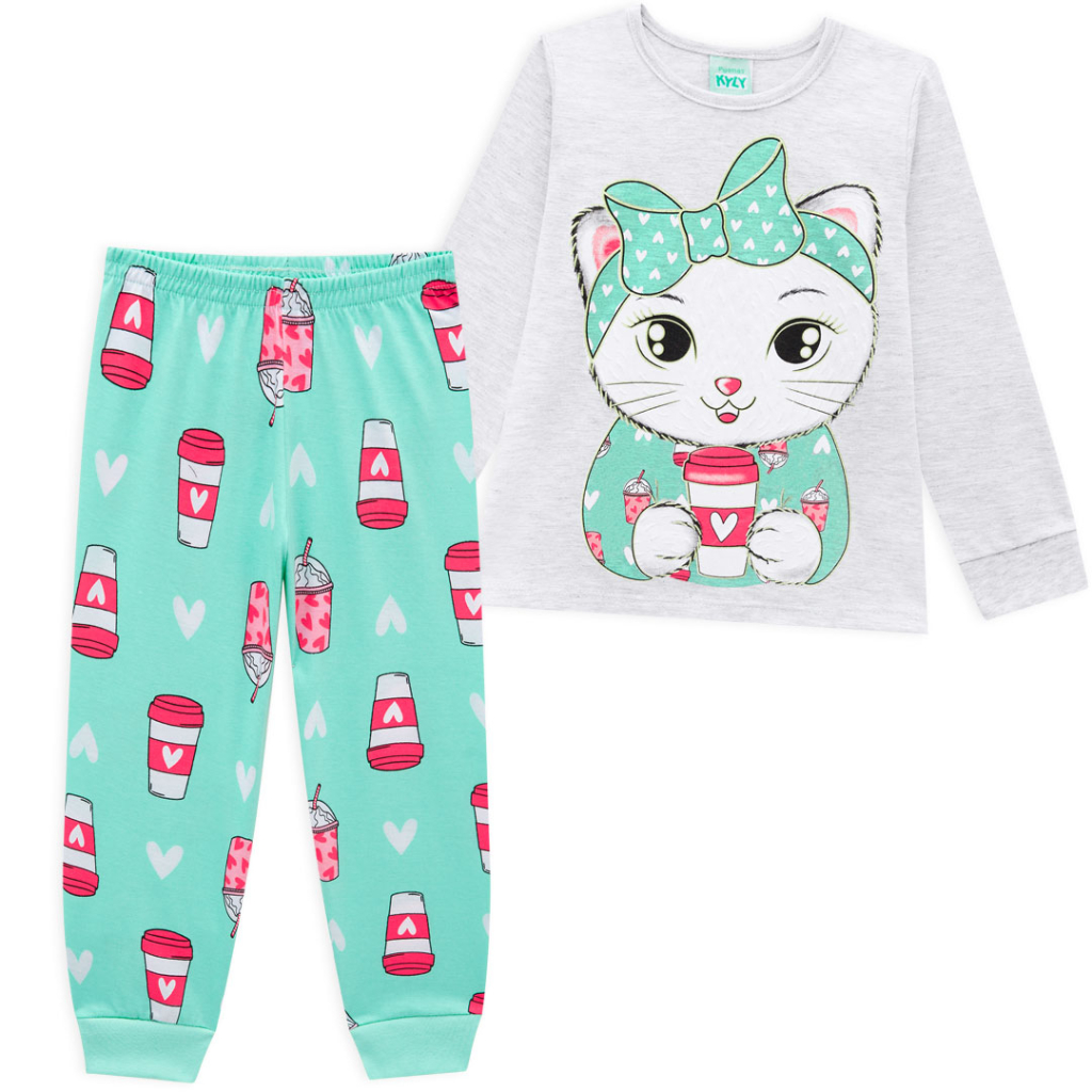 Dievčenské pyžamo KYLY MAČIČKA šedé