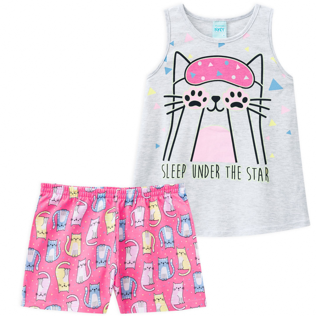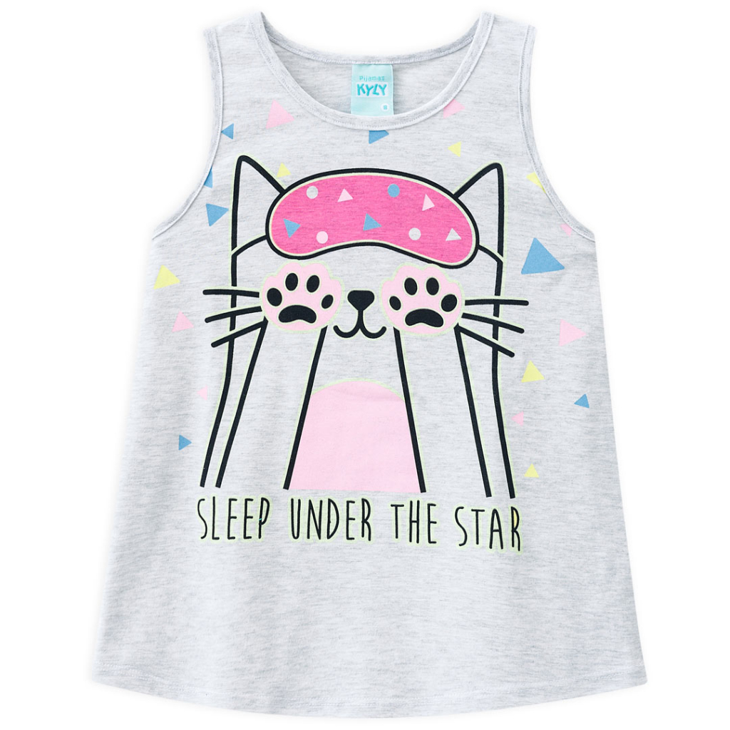 Dievčenské letné pyžamo. Tričko bez rukávov, pohodlné šortky. Veselá, farebná potlač.Dodatočné parametre