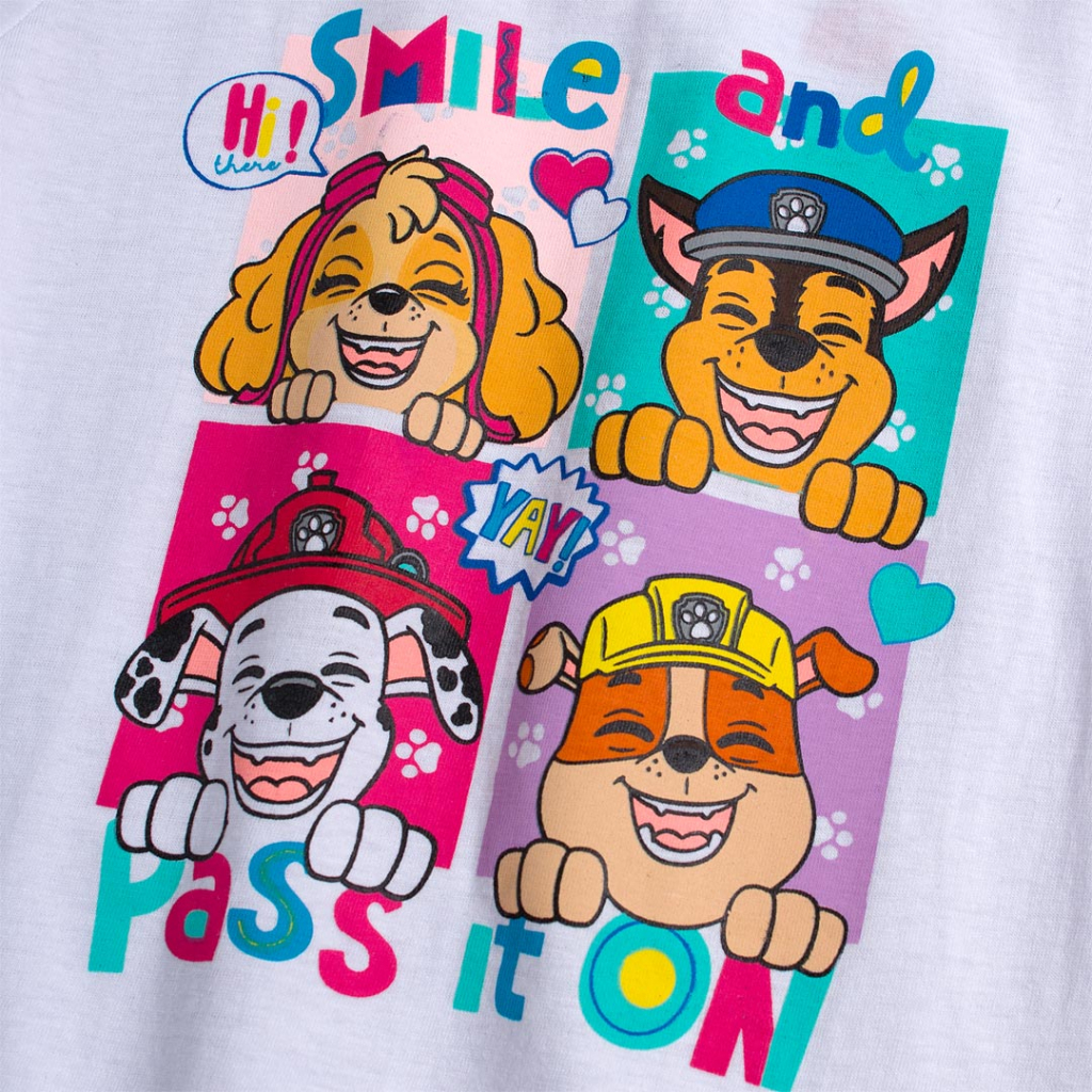 Dievčenské letné pyžamo s krásnym obrázkom psíkov z Labkovej patroly. Tričko s krátkym rukávom a pohodlné šortky. Bavlnený úplet.Dodatočné parametre