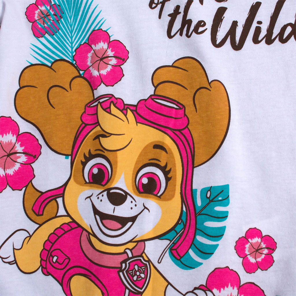 Dievčenské pyžamo so SKYE z Labkovej patroly. Tričko s krátkym rukávom, s farebným obrázkom. Jednofarebné šortky. Pohodlný bavlnený úplet.Dodatočné parametre