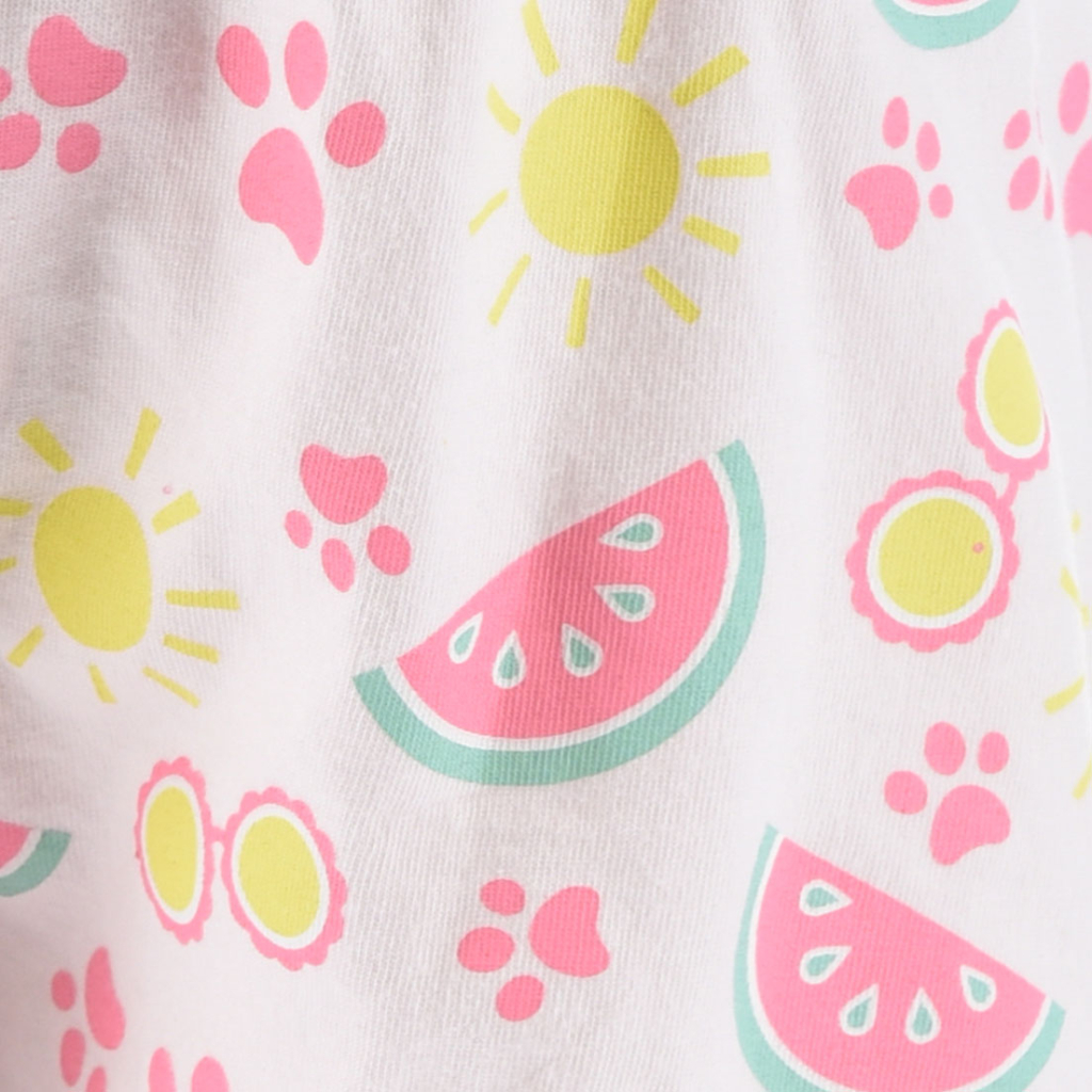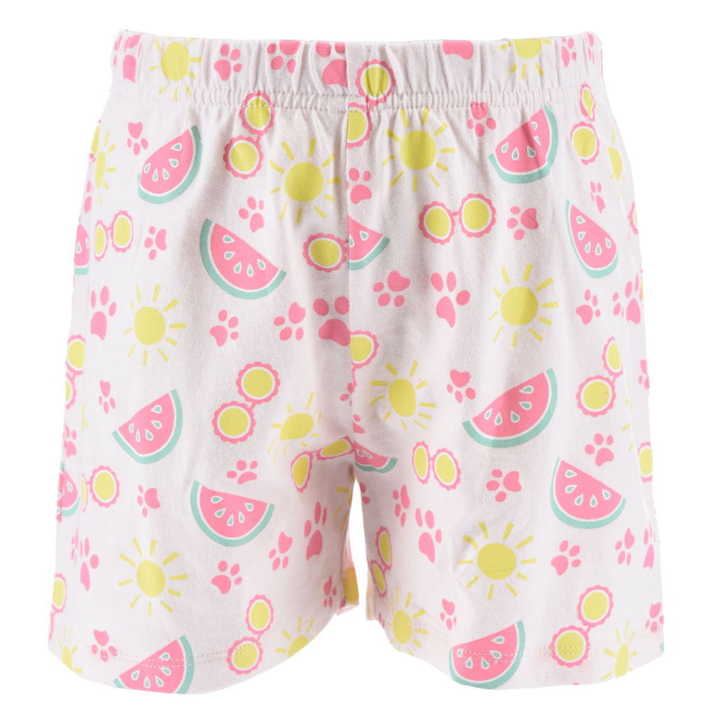 Dievčenské pyžamo s motívom Labkovej patroly. Tričko s krátkym rukávom, s farebným obrázkom. Pohodlné šortky v páse na gumu, s potlačou.Dodatočné parametre