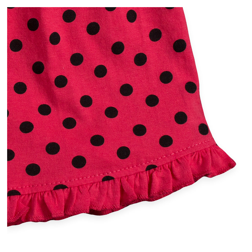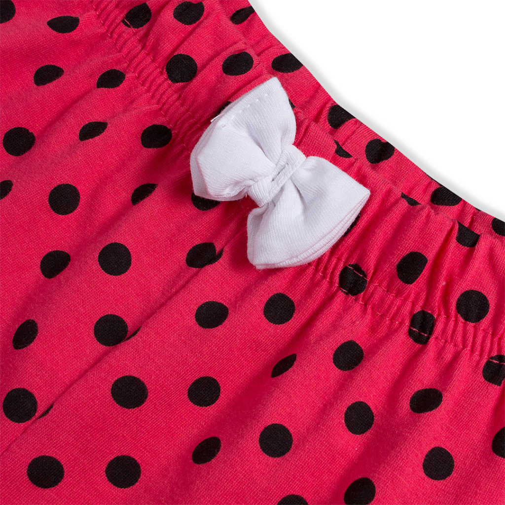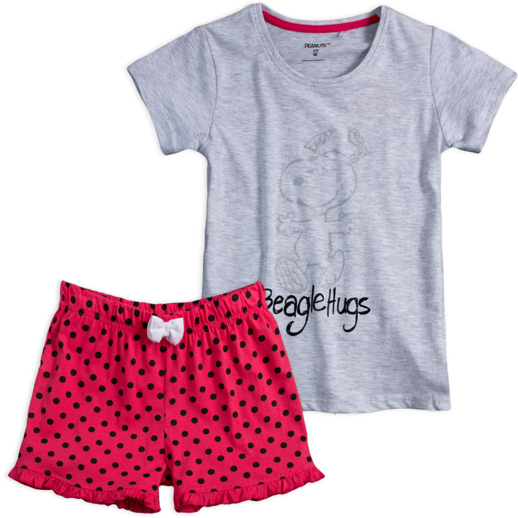 Dievčenské pyžamo so psíkom Snoopym. Tričko s krátkym rukávom, so striebornou potlačou. Pohodlné šortky s bodkami, v páse našitá mašlička. Mäkký, pružný úplet.Dodatočné parametre