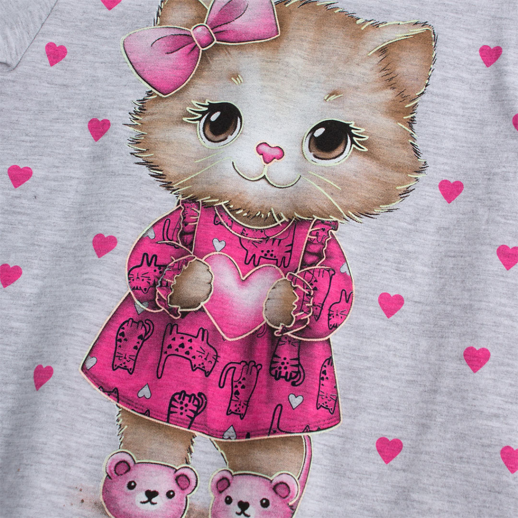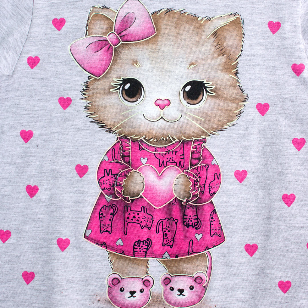 Dievčenské pyžamo svietiace v tme KYLY MAČIČKA, SRDIEČKA šedé