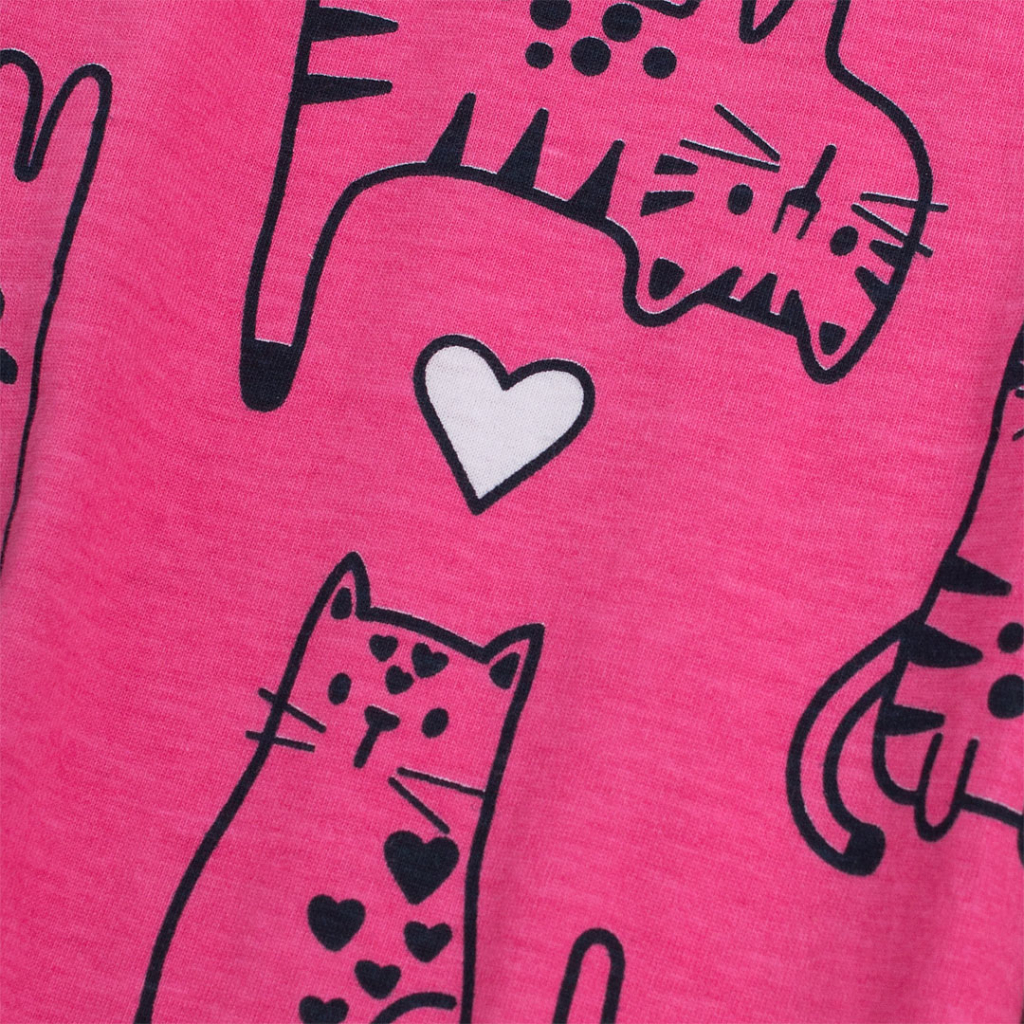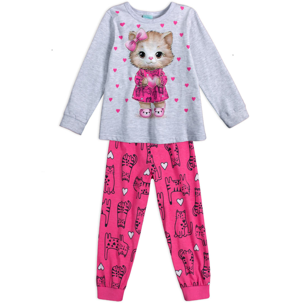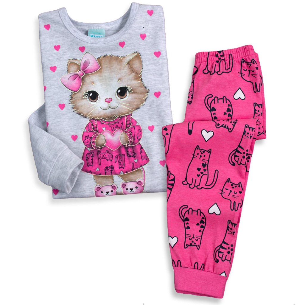 Krásne dievčenské pyžamko s mačičkou. Tričko s dlhým rukávom, pohodlné nohavice s pružným patentom na nohavici. Obrysy mačičky na tričku v tme svietia. Vyrobené v Brazílii.Dodatočné parametre