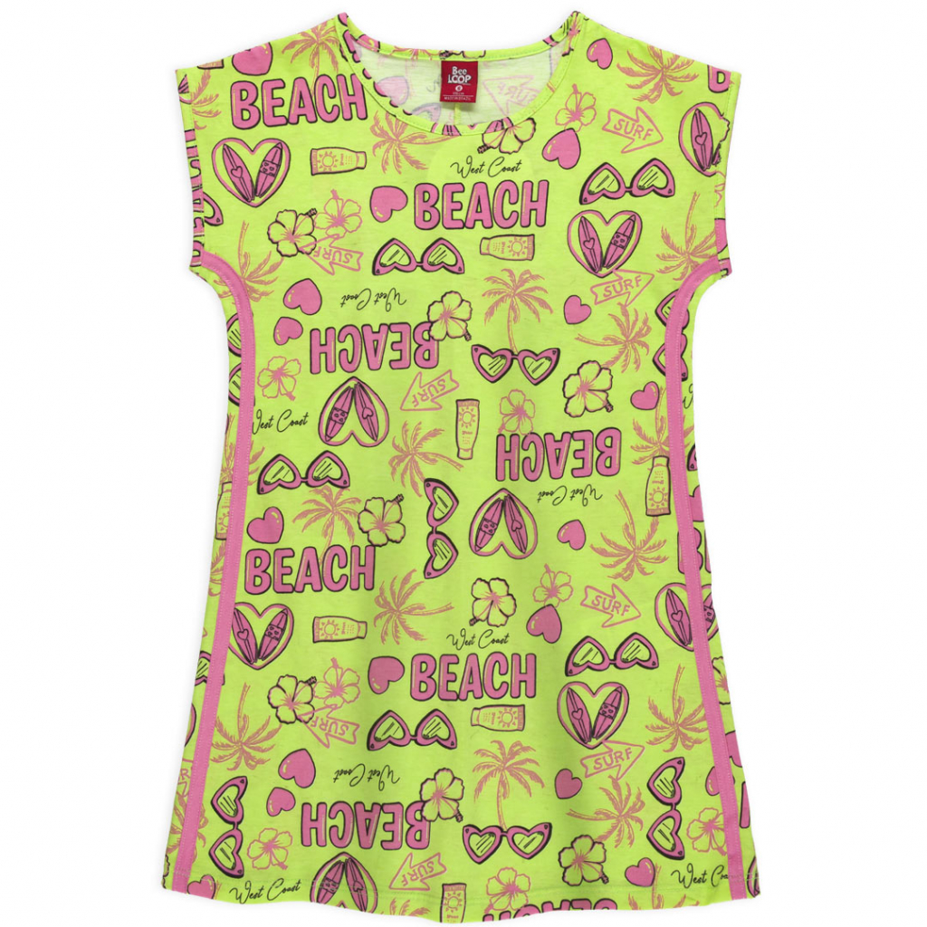 Letné šaty s krátkym rukávikom. Mierne priliehavý strih s lampasmi na bokoch. Farebná potlač. Vyrobené v Brazílii.Dodatočné parametre