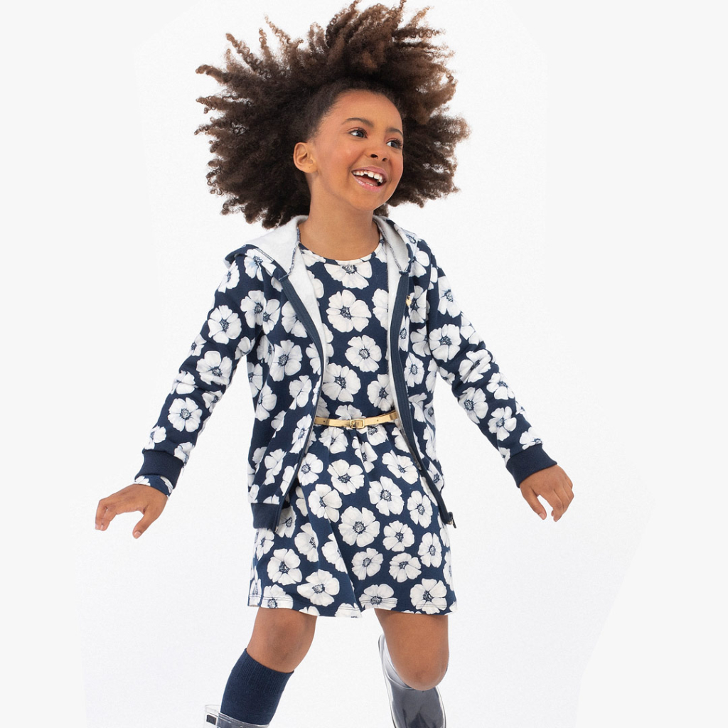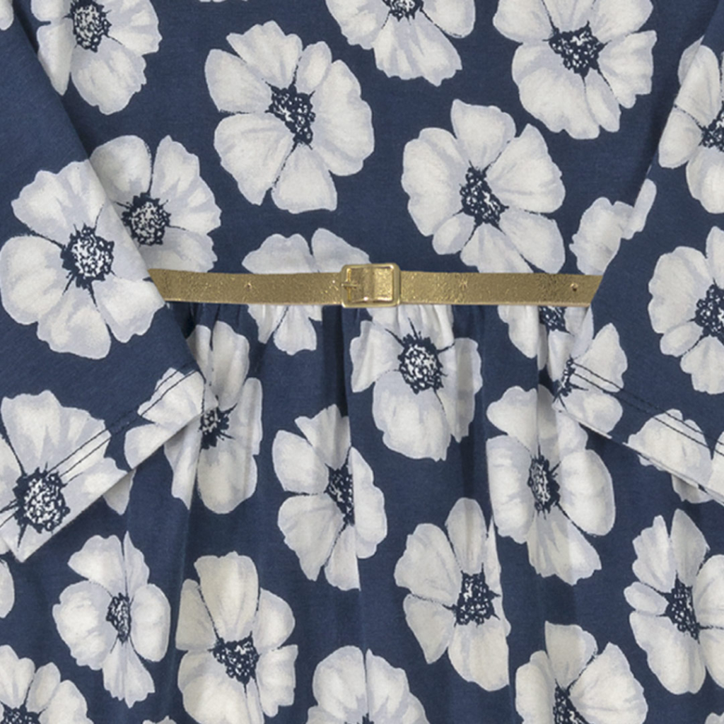Dievčenské šaty s dlhým rukávom, s kvetinovou potlačou. Bavlnený úplet s elastanom, krásne pružný. Vrátane tenkého zlatého opasku. Vyrobené v Brazílii.Dodatočné parametre