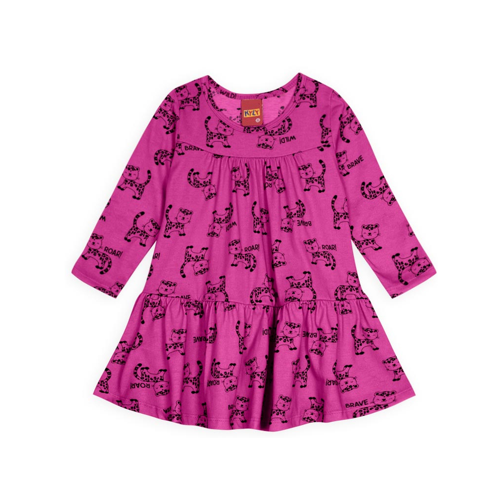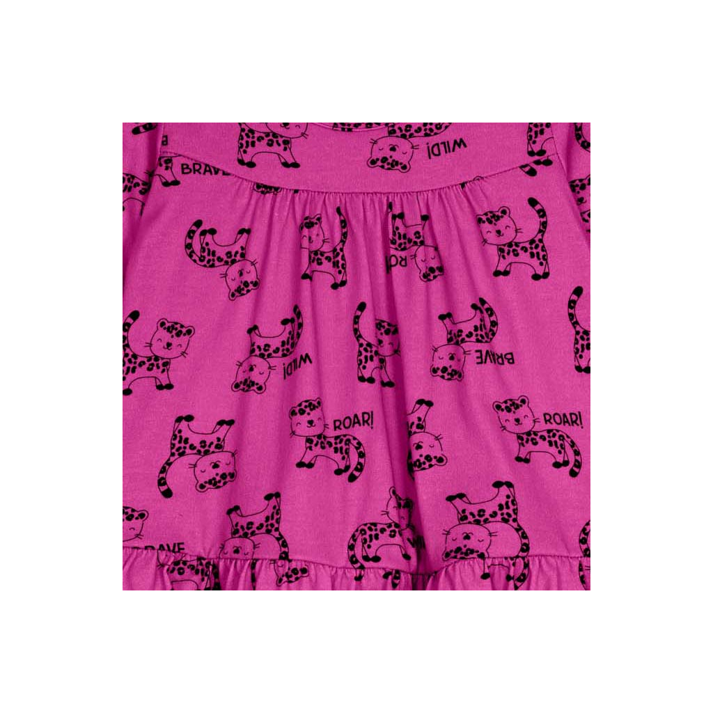 Dievčenské šaty s dlhým rukávom, s roztomilou potlačou. Rozšírený strih s volánom dole. Príjemný bavlnený úplet. Vyrobené v Brazílii.Dodatočné parametre