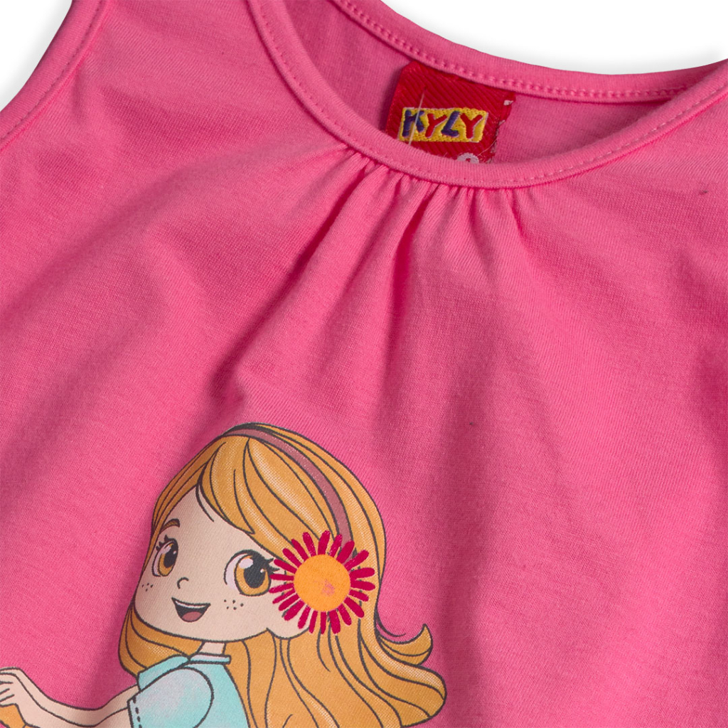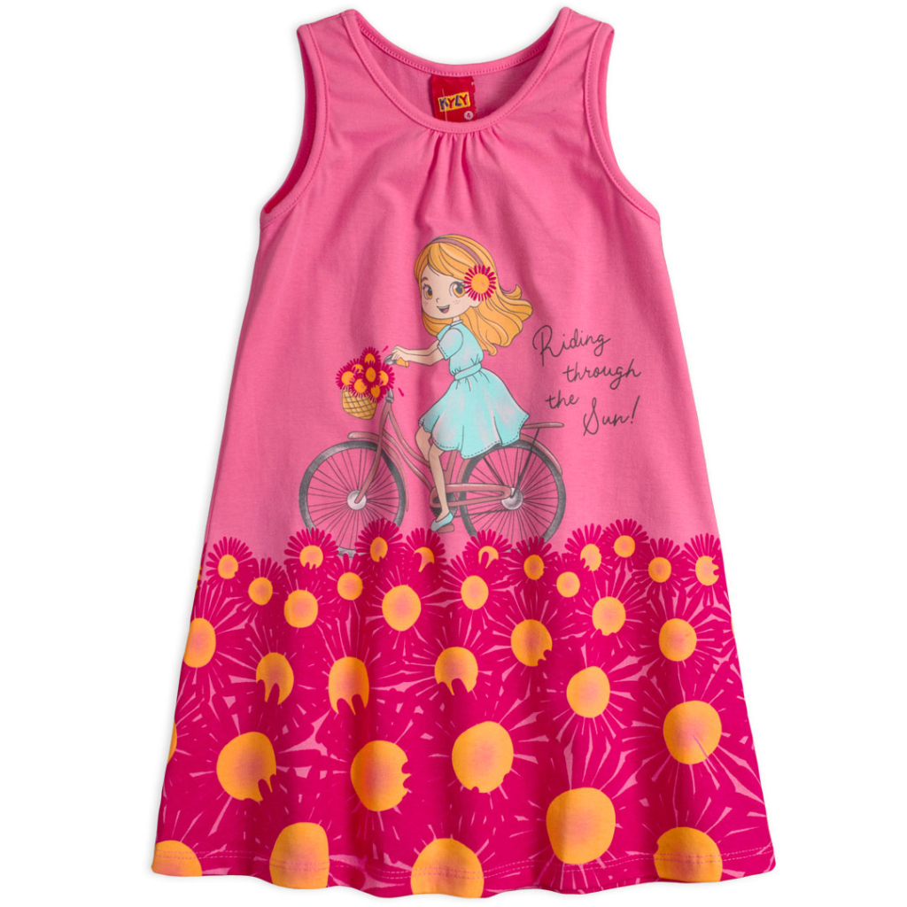 Dievčenské letné šaty bez rukávov. S krásnym, farebným obrázkom. Rozšírený strih. Mäkký bavlnený úplet. Vyrobené v Brazílii.