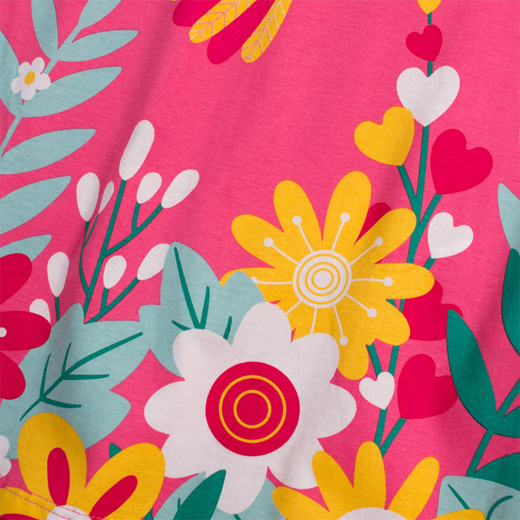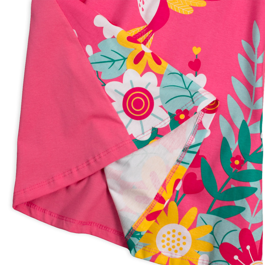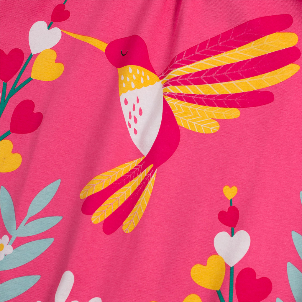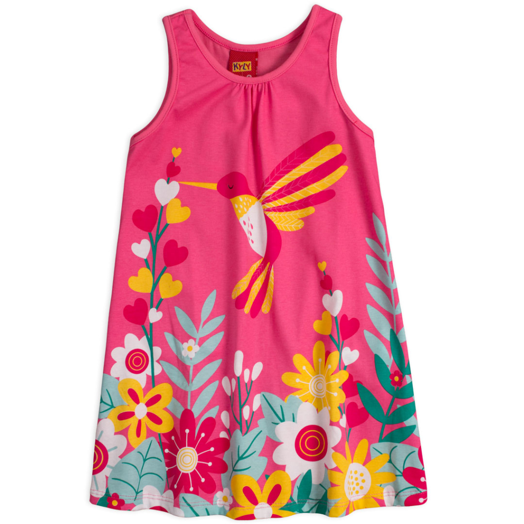 Letné šaty bez rukávov, s krásnou potlačou farebných kvetov a kolibríka. Zadný diel jednofarebný. Pohodlný strih. Mäkký bavlnený úplet. Vyrobené v Brazílii.Dodatočné parametre