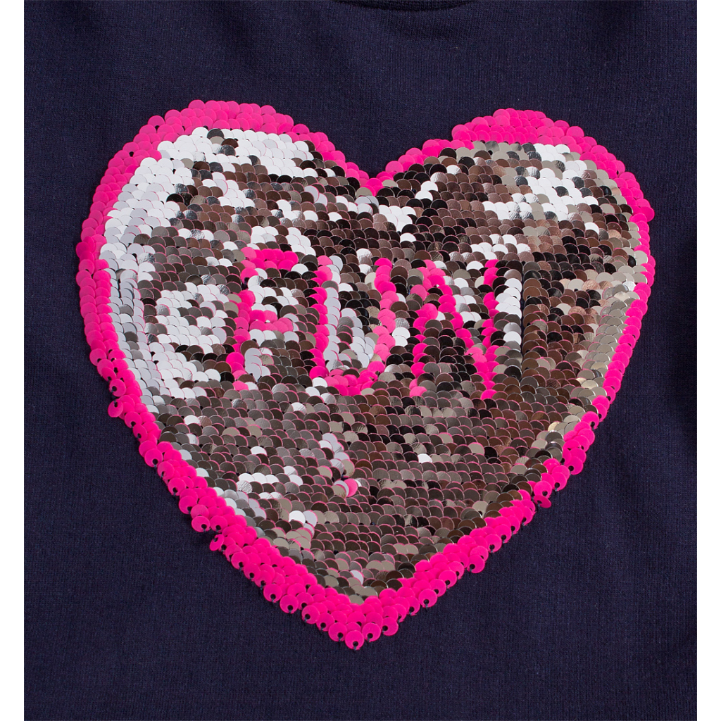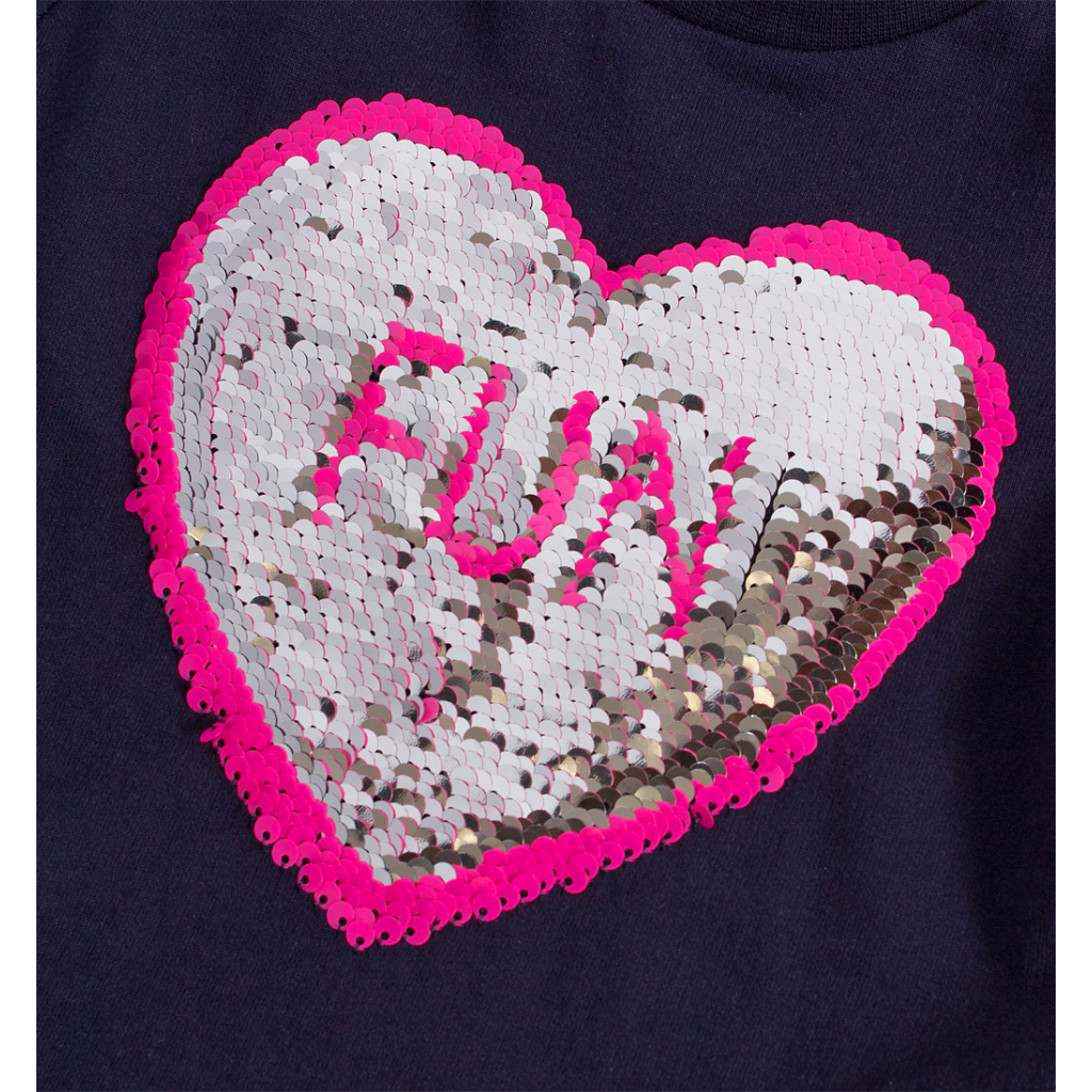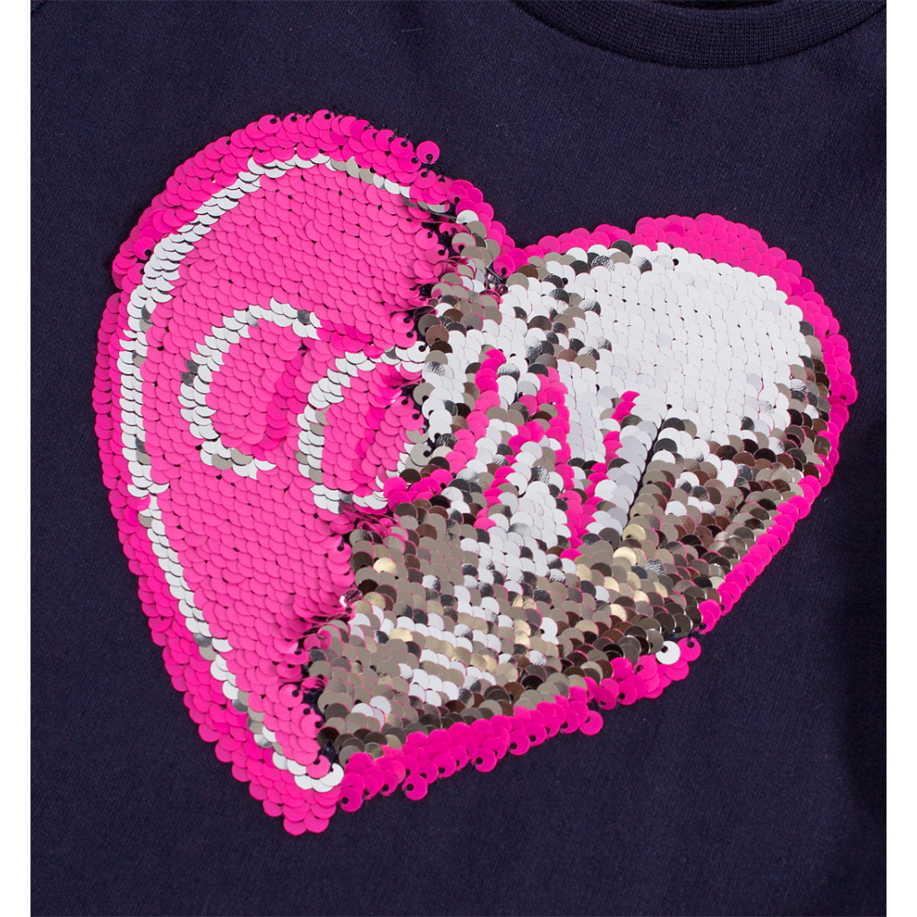 Dievčenské šaty s dlhým rukávom. Aplikácia z preklápacích flitrov. Spodná časť s potlačou. Príjemný bavlnený úplet.Dodatočné parametre