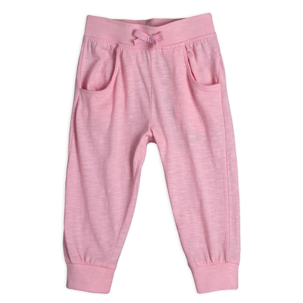 Dievčenské tepláčiky z bavlneného slub úpletu. V páse guma, ozdobná mašlička. Vpredu funkčné vrecká. Príjemný materiál.Dodatočné parametre