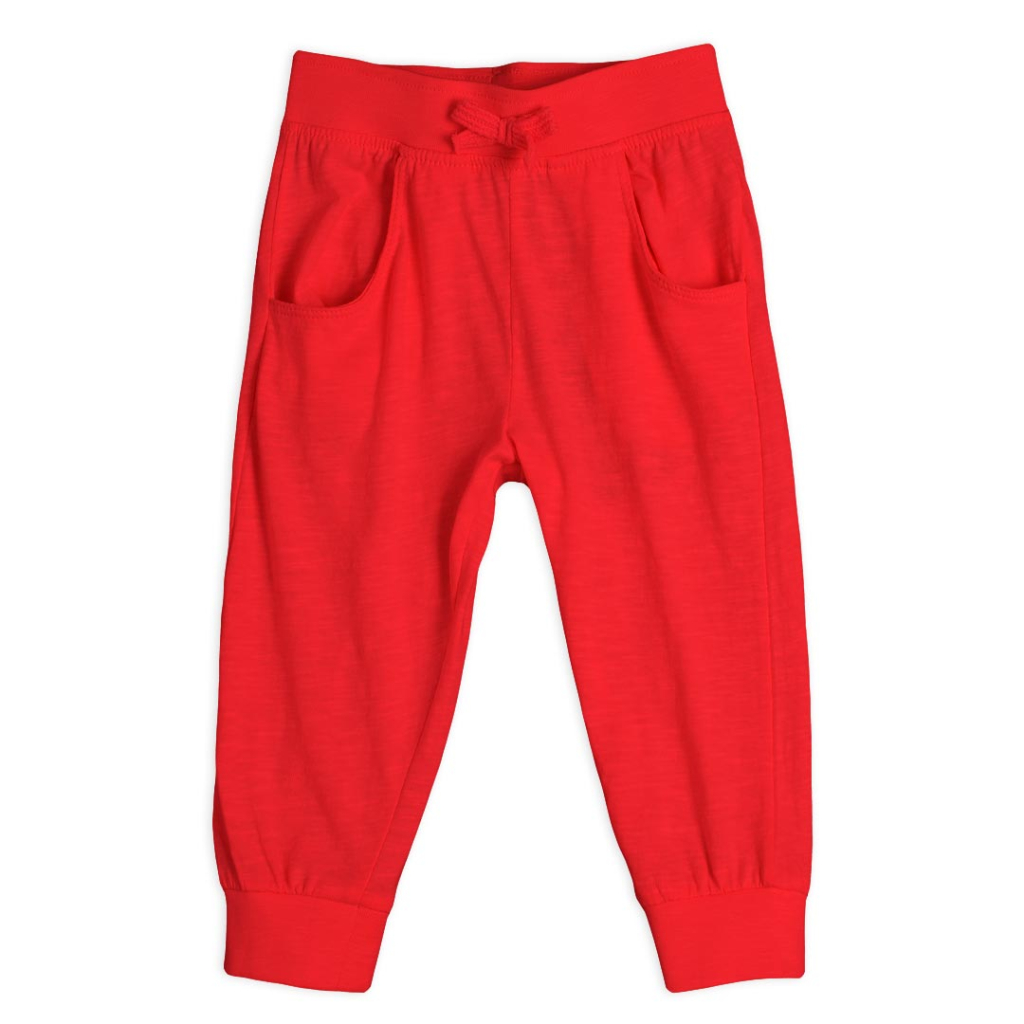 Dievčenské tepláčiky z bavlneného slub úpletu. V páse guma, ozdobná mašlička. Vpredu funkčné vrecká. Príjemný materiál.Dodatočné parametre