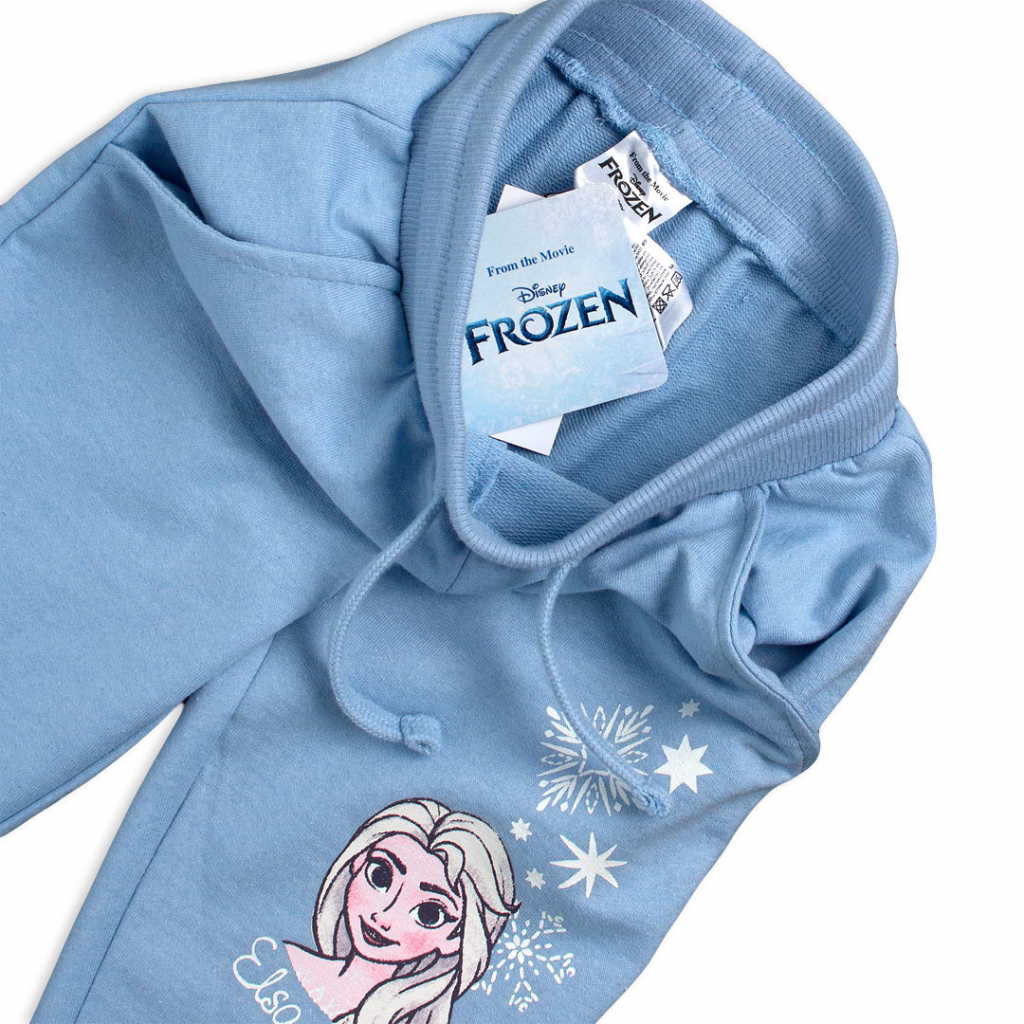 Dievčenské tepláky s Elsou z Ľadového kráľovstva. V páse guma, šnúrka na stiahnutie. Na bokoch vrecká. Teplákovina bez chĺpku.Dodatočné parametre