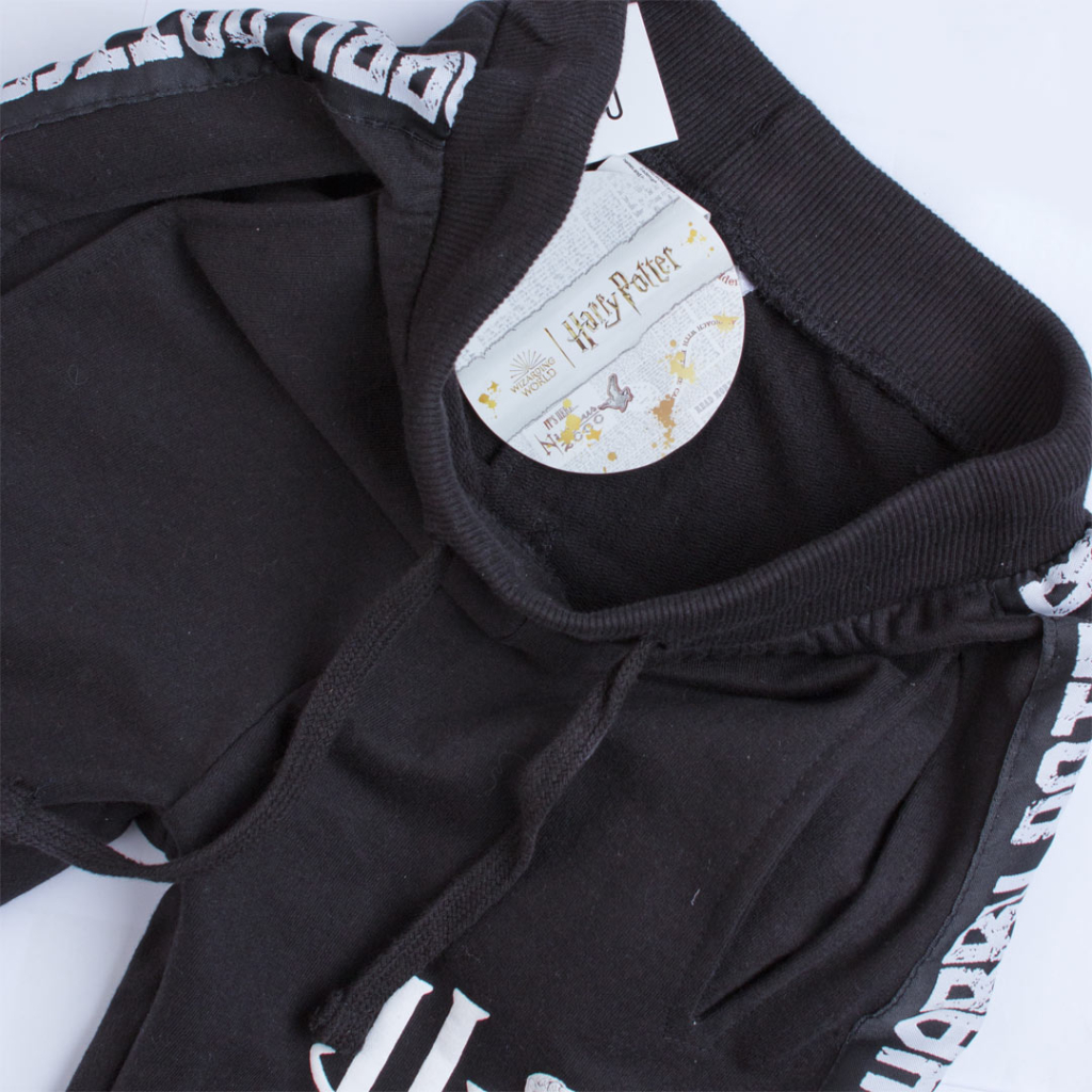Dievčenské tepláky s potlačou s motívmi Harryho Pottera. V páse guma, šnúrka na stiahnutie. S vreckami. Nohavice majú prišité ohrnutie. Teplákovina na rube bez chĺpku.Dodatočné parametre