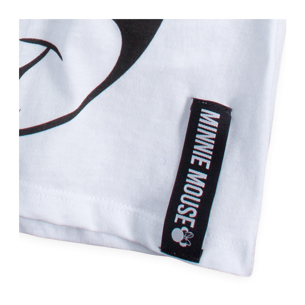 Dievčenské tričko s Minnie. Veľký obrázok na prednom diele, drobná nášivka vpredu dole. Zadný diel mierne predĺžený. Príjemná bavlna.Dodatočné parametre