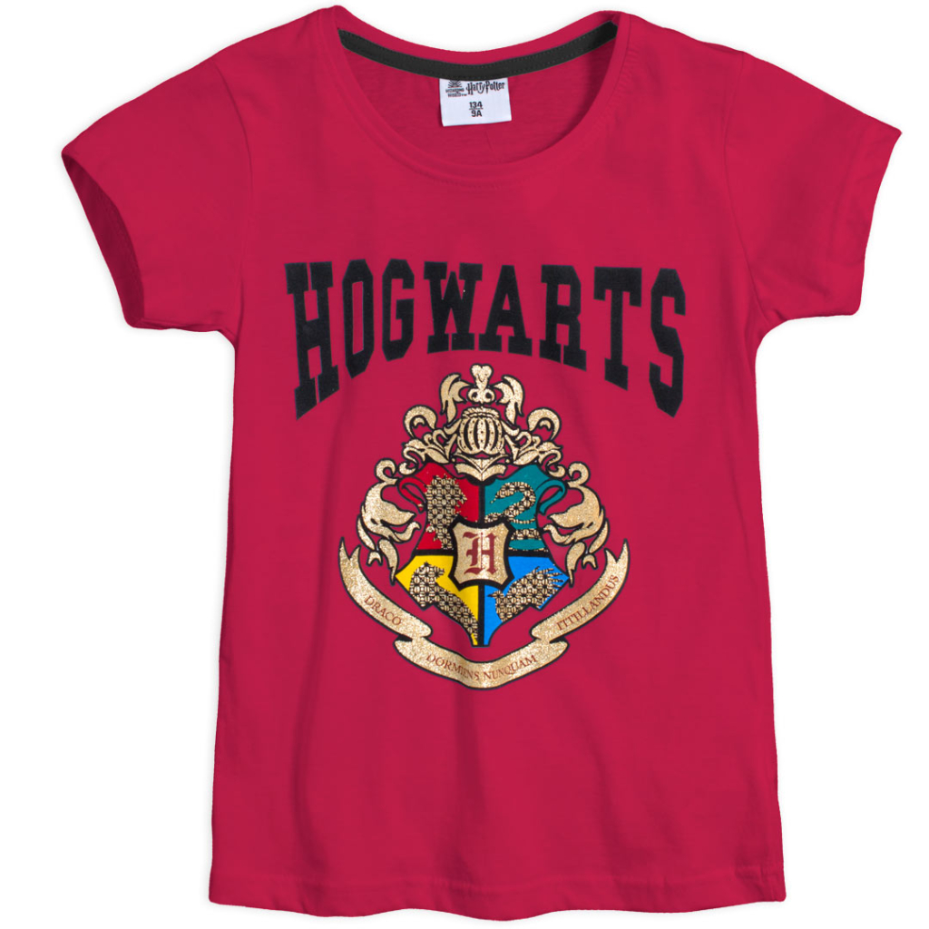 Dievčenské tričko s erbom Rokfortskej strednej školy čarodejníckej. Krátky rukáv, bavlnený úplet. Potlač so zlatými detailmi.Dodatočné parametre