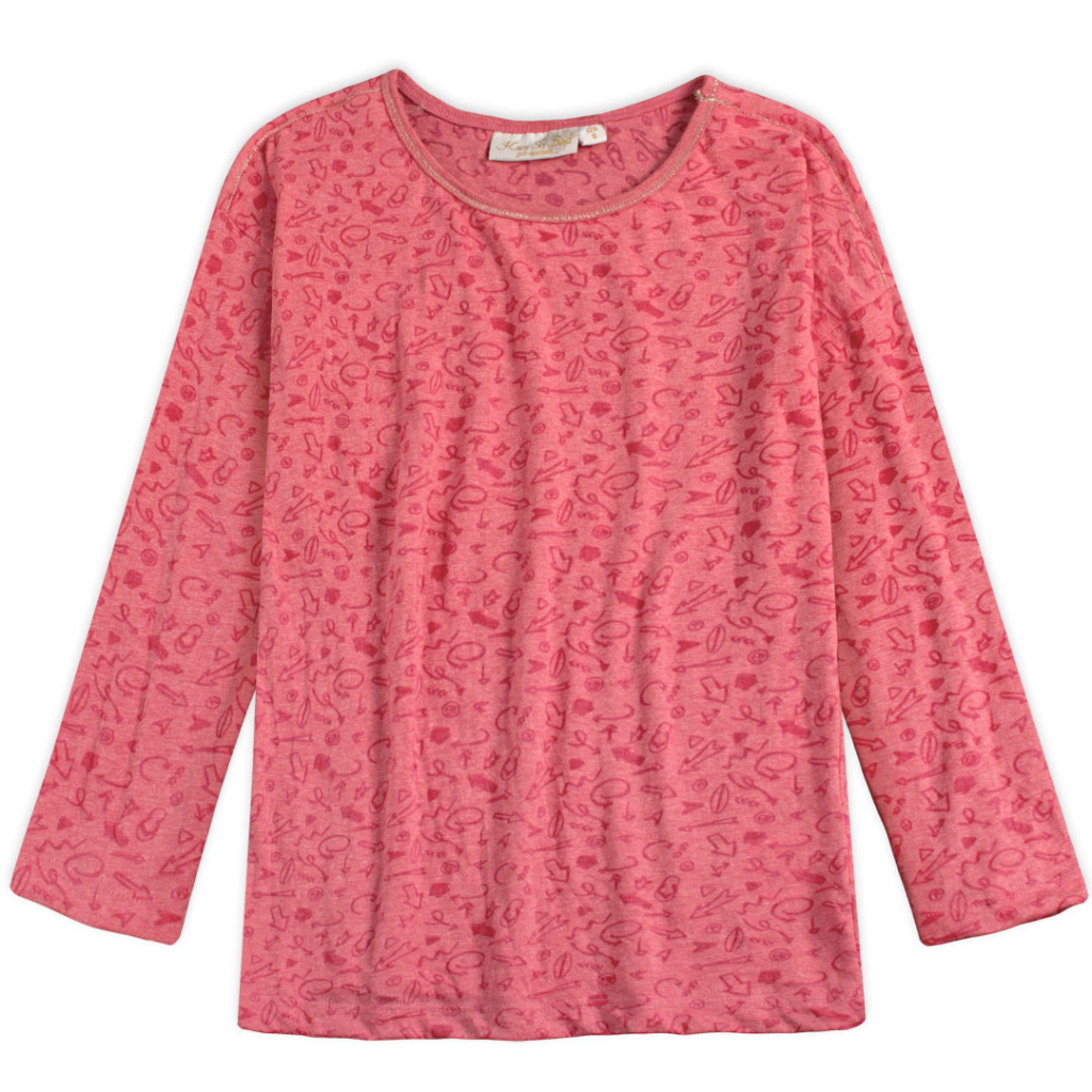 Dievčenské ľahké tričko s dlhými rukávmi. Efektný čiastočne priehľadný vzor, ozdobné prešitie zlatistou nitkou.Dodatočné parametre