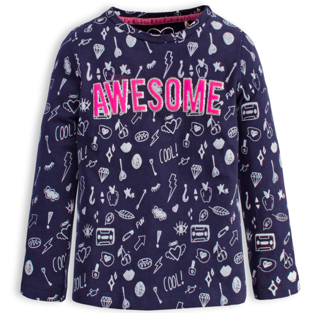 Dievčenské tričko s dlhým rukávom. Veľmi mäkký a pružný úplet s potlačou. Farebný nápis.Dodatočné parametre