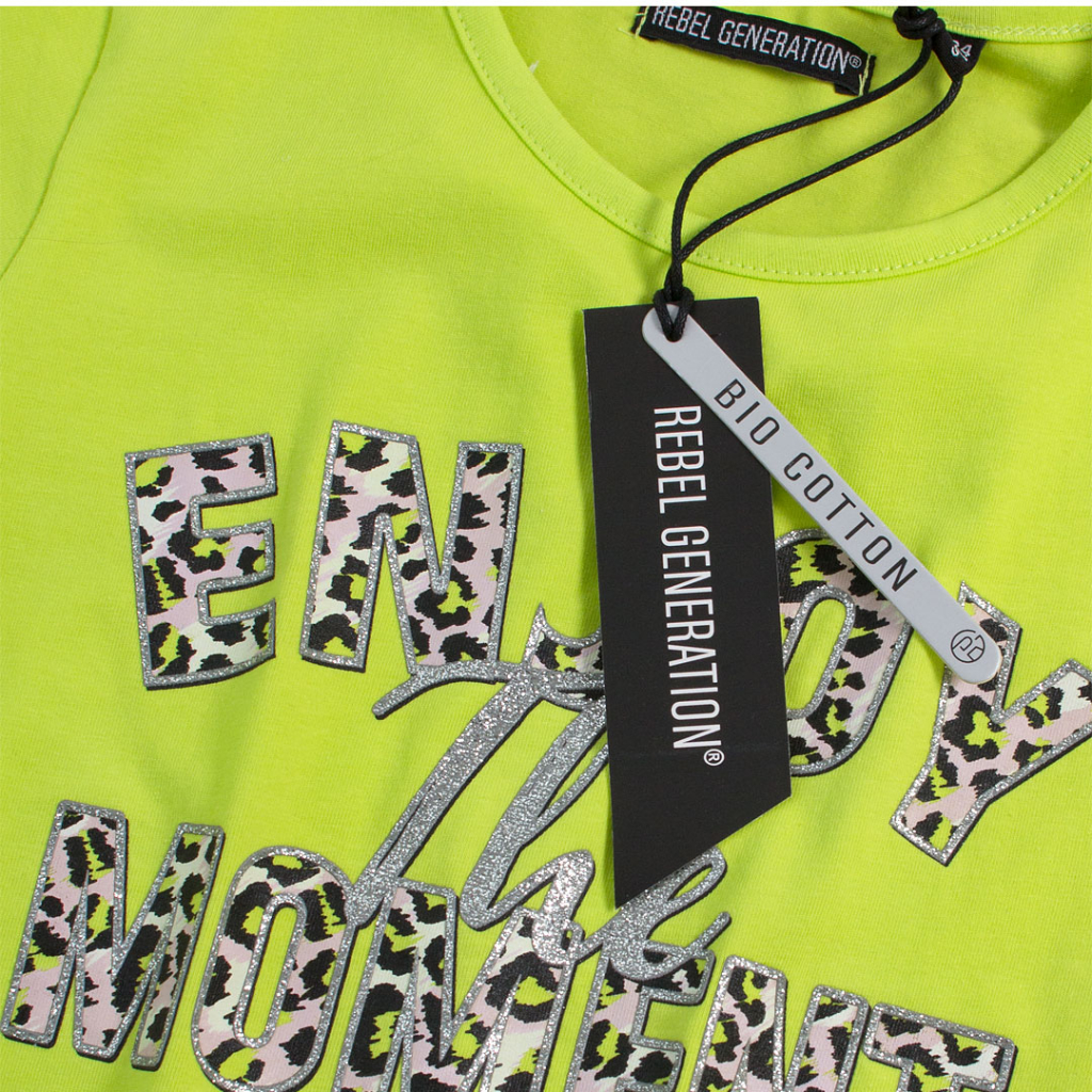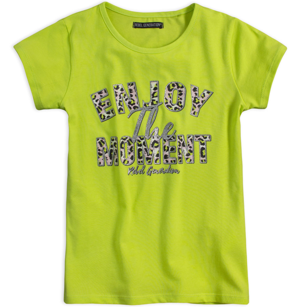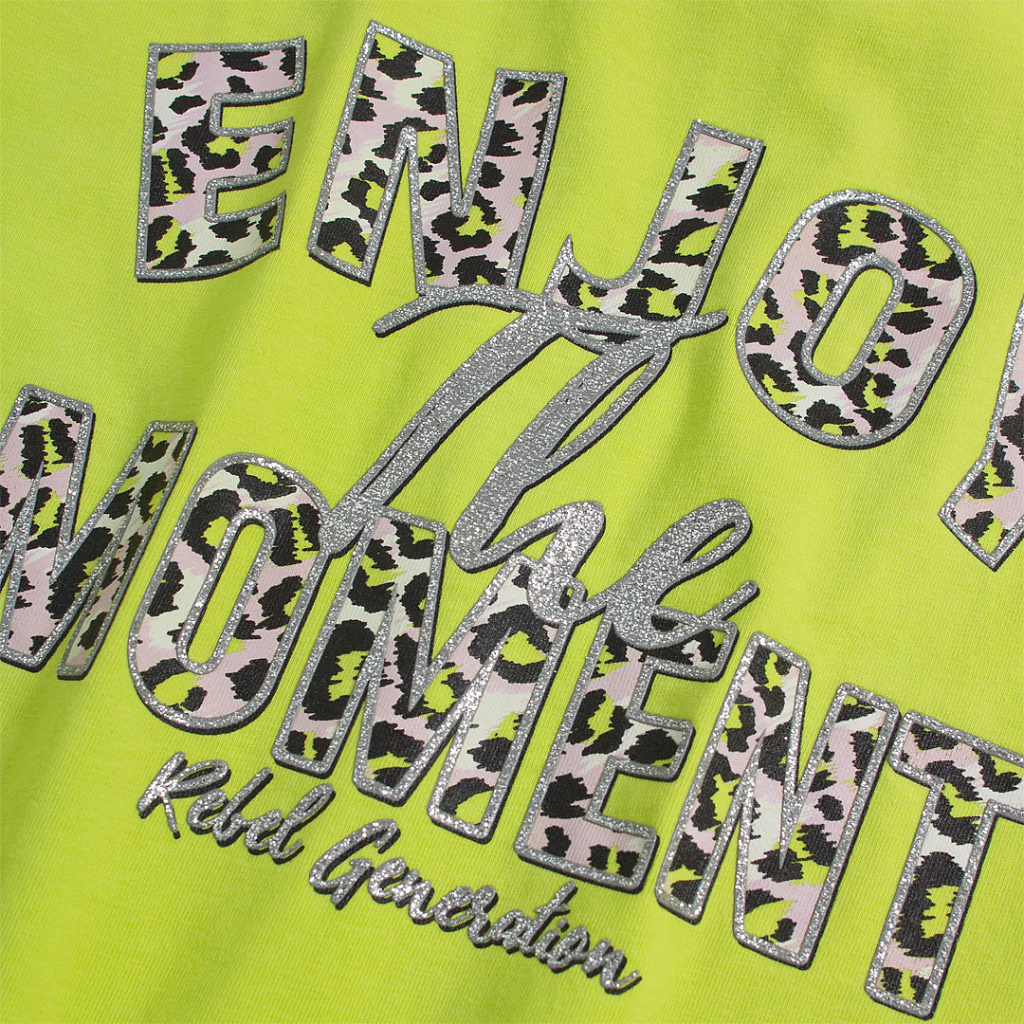 Dievčenské tričko s nápisom so striebornými detailmi. Krátky rukáv. Veľmi príjemný, pružný úplet. Vyrobené z biobavlny.Dodatočné parametre