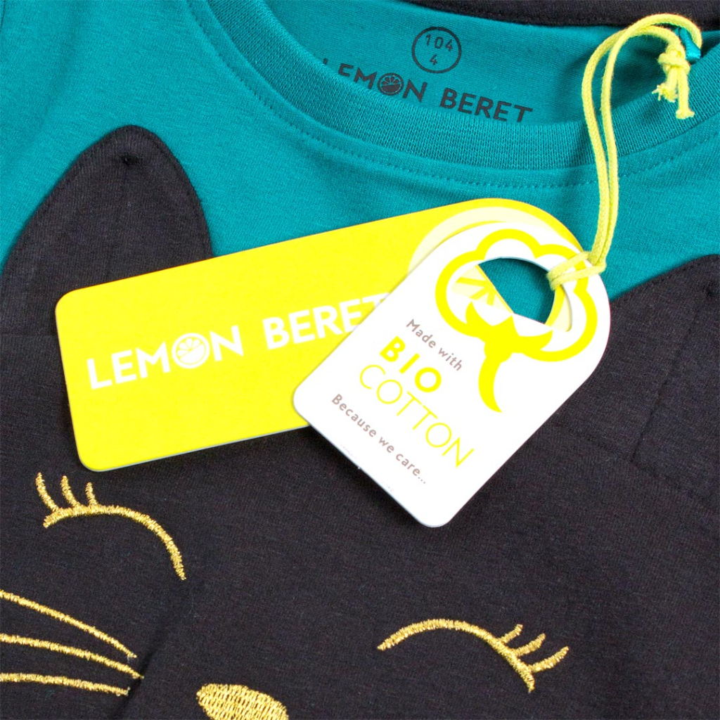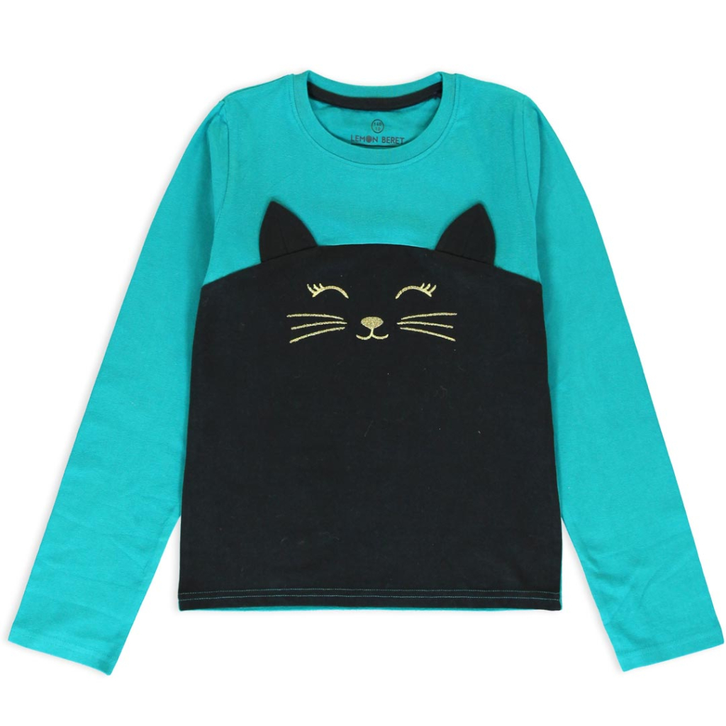 Dievčenské tričko LEMON BERET MAČKA tyrkysové