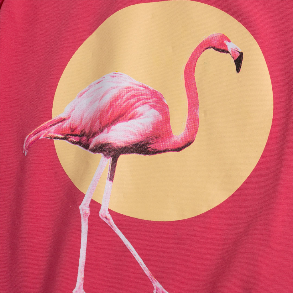 Dievčenské tričko s krátkym rukávom, s obrázkom plameniaka. Pružný bavlnený úplet.Dodatočné parametre