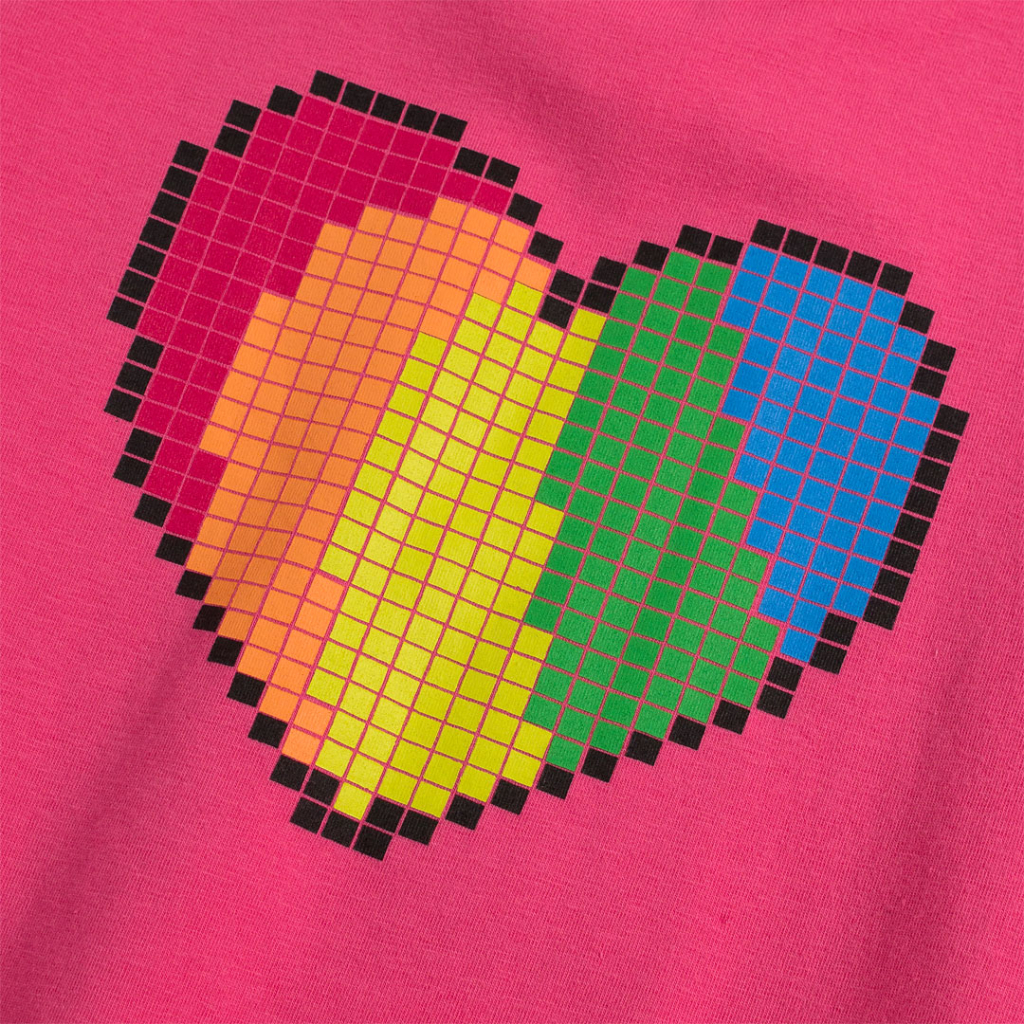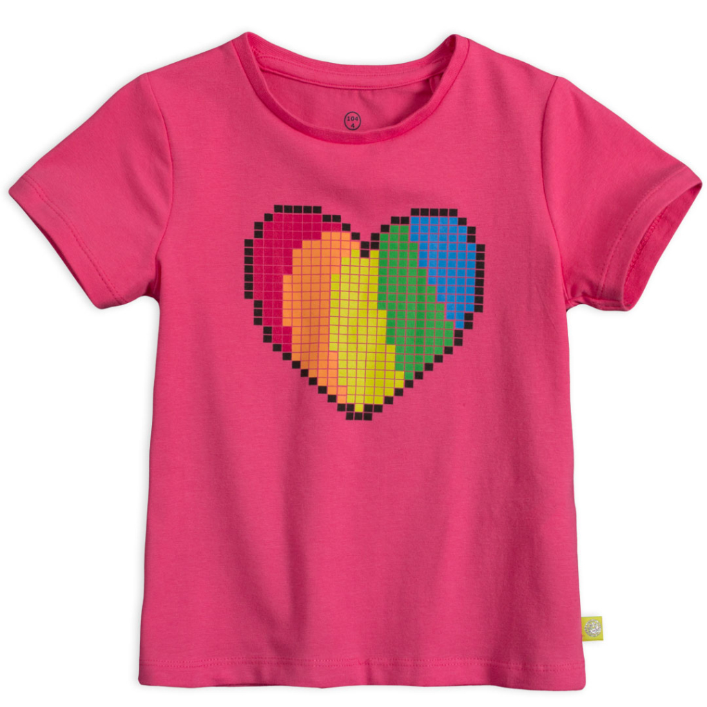 Dievčenské tričko s krátkym rukávom, s obrázkom farebného srdiečka. Veľmi príjemné na nosenie, pružný materiál s podielom elastanu.Dodatočné parametre