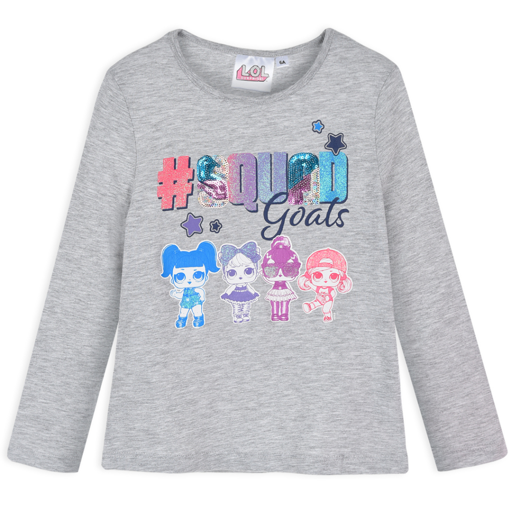 Dievčenské tričko s dlhým rukávom. Farebná licenčná potlač L.O.L. SURPRISE. Trblietavý nápis zdobený flitrami.Dodatočné parametre