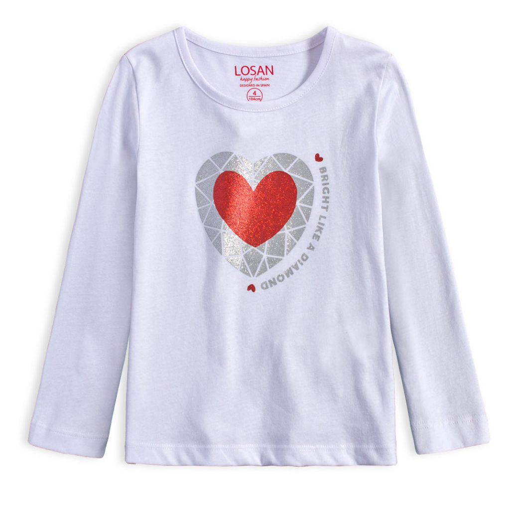 Tričko s dlhým rukávom pre dievčatá. Trblietavá potlač na pružnom, mäkkom úplete.Dodatočné parametre