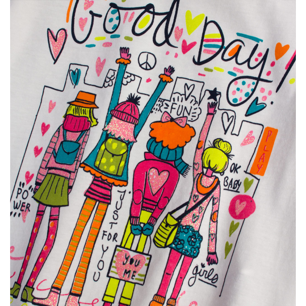 Dievčenské tričko s dlhým rukávom. Veselá, farebná potlač. Príjemný, pružný materiál - organická bavlna.Dodatočné parametre